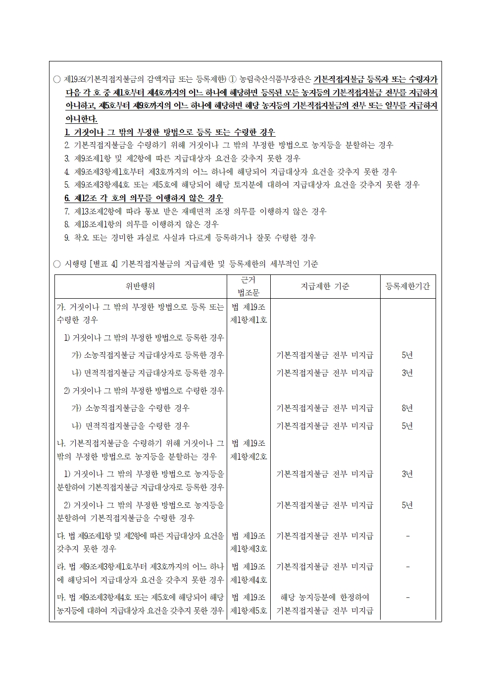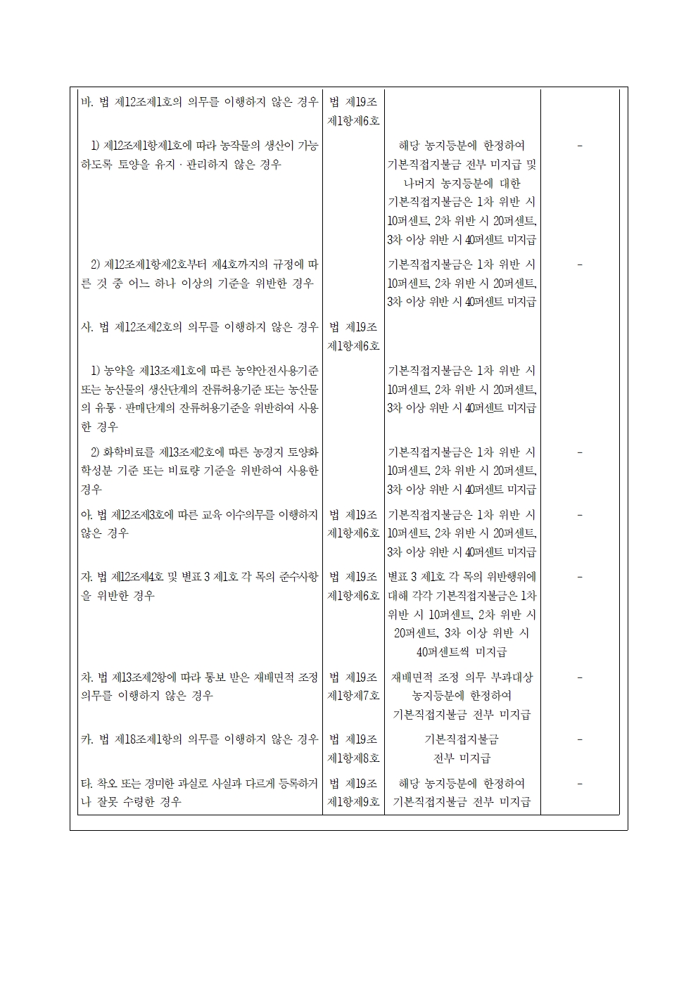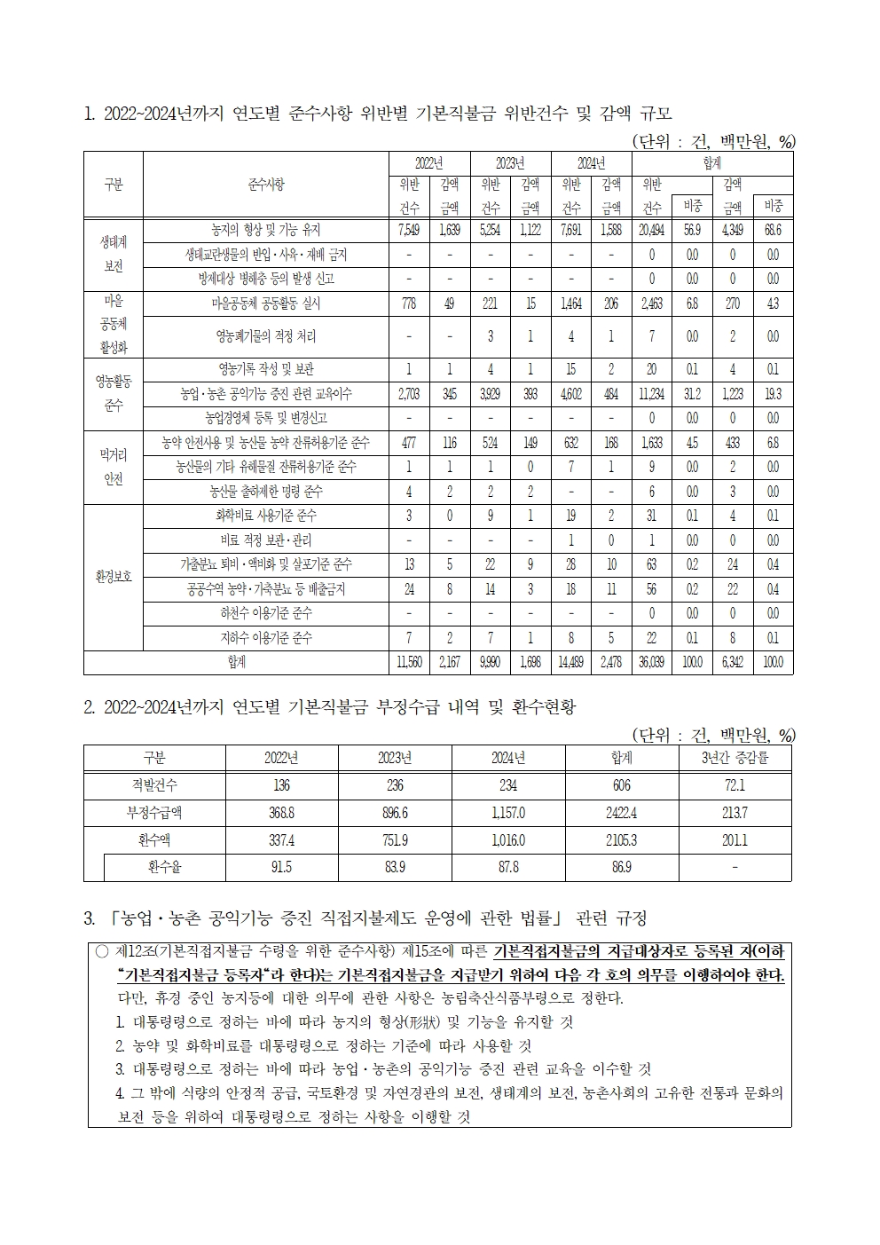 [윤준병 의원 국정감사 보도자료] 기본직불금 수령 위한 준수사항 미이행 매년 1.2만건, 연간 20억원 감액