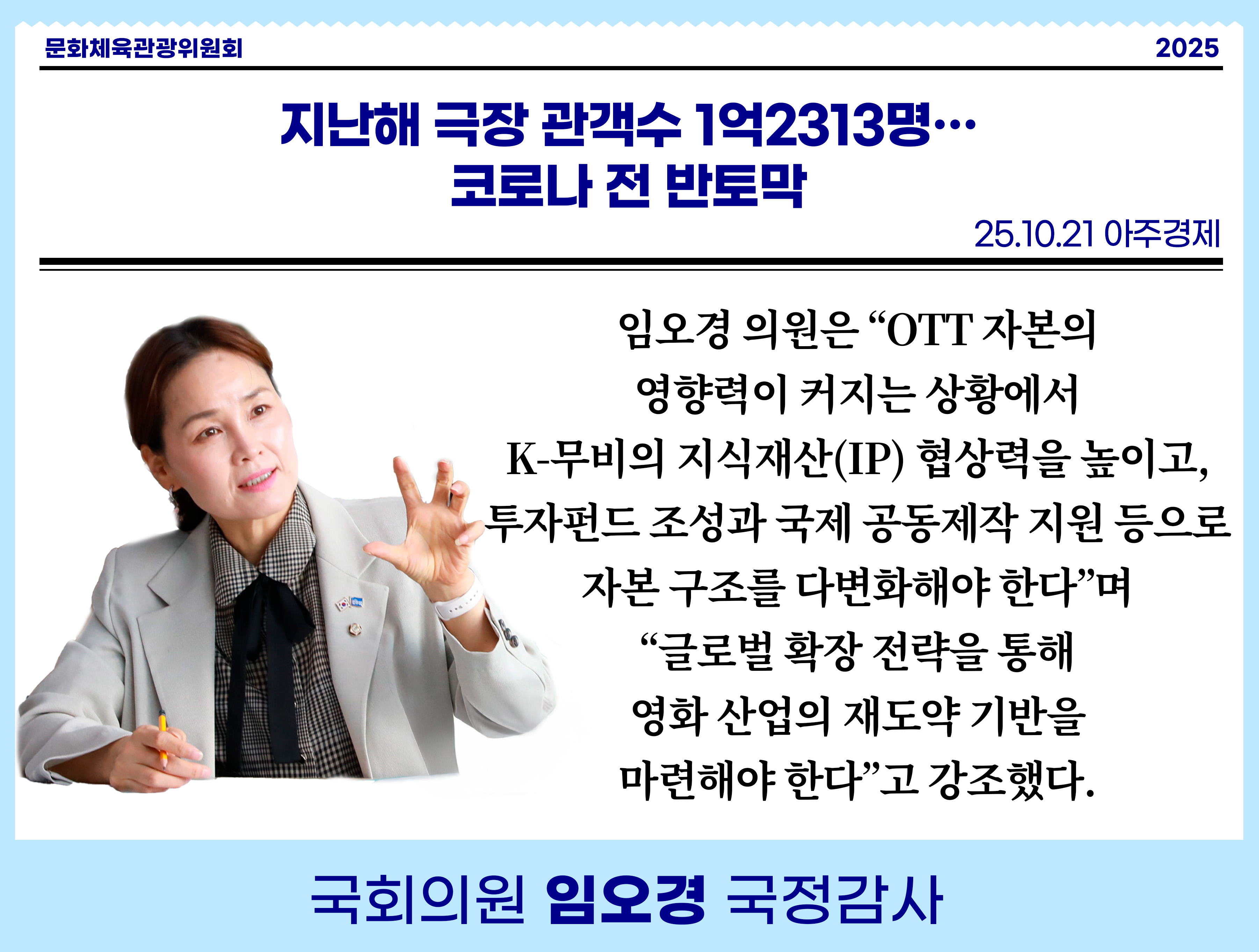 [임오경 카드뉴스]지난해 극장 관객수 1억2313명…코로나 전 반토막