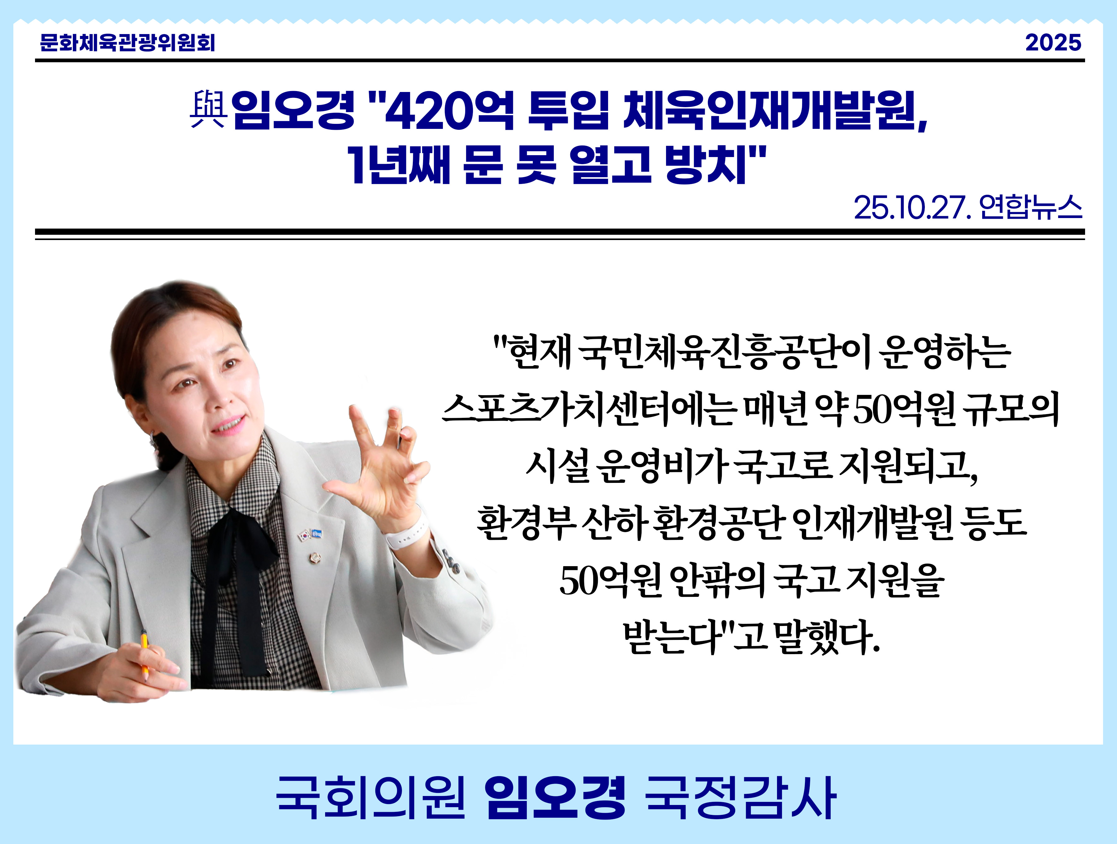 [임오경 카드뉴스]與임오경 "420억 투입 체육인재개발원, 1년째 문 못 열고 방치"