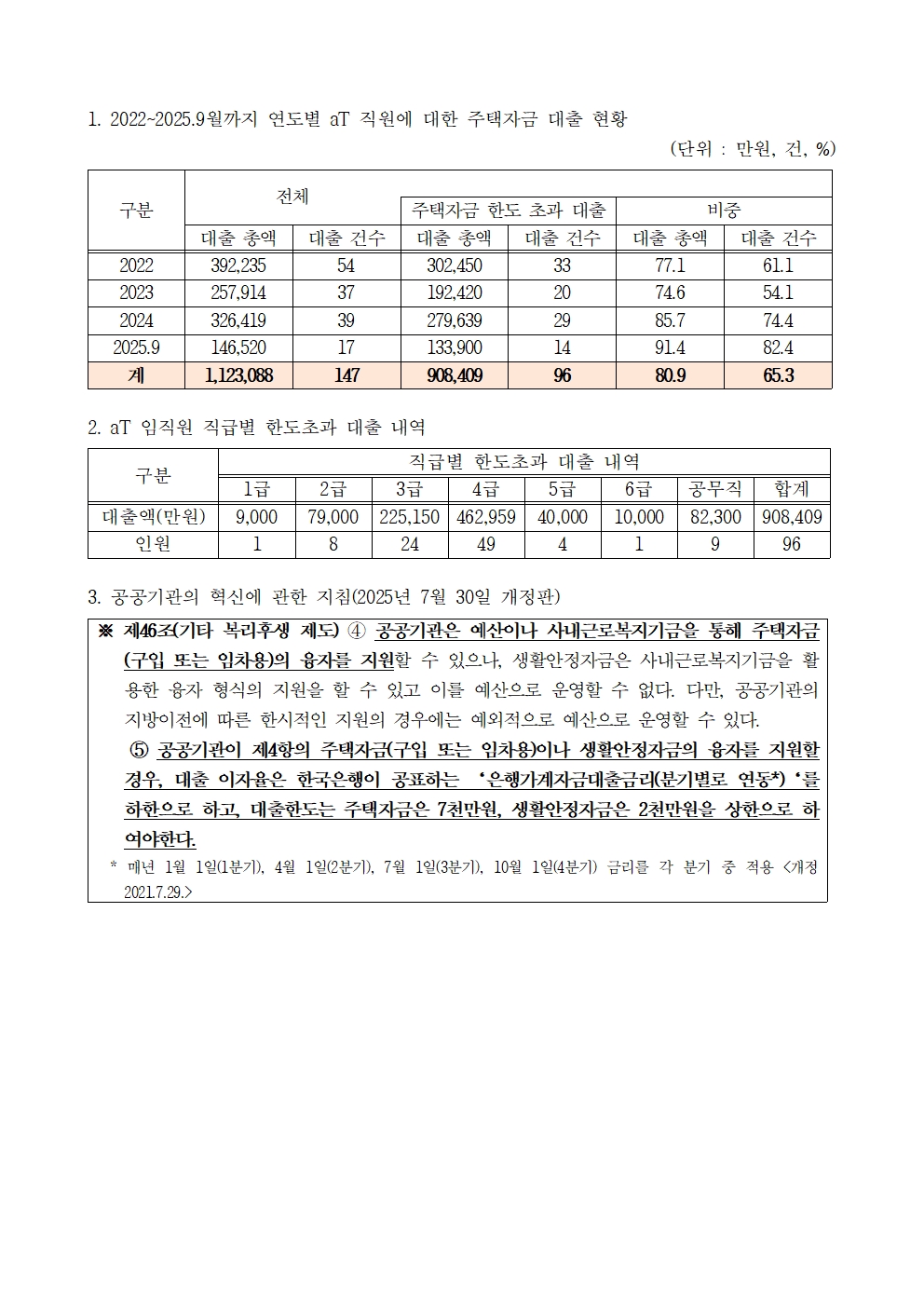 251017 [윤준병 의원 국정감사 보도자료] aT 정부 지침 무시하며 임직원 주택자금 특혜 대출 상시 운영.hwp