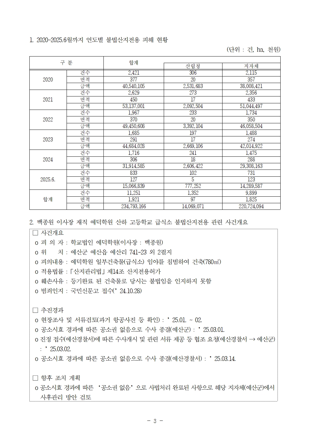 251020 [윤준병 의원 국정감사 보도자료] 불법산지전용 공소시효 만료로 처벌 피한 ‘제2의 백종원·예덕학원’ 수두룩.hwp
