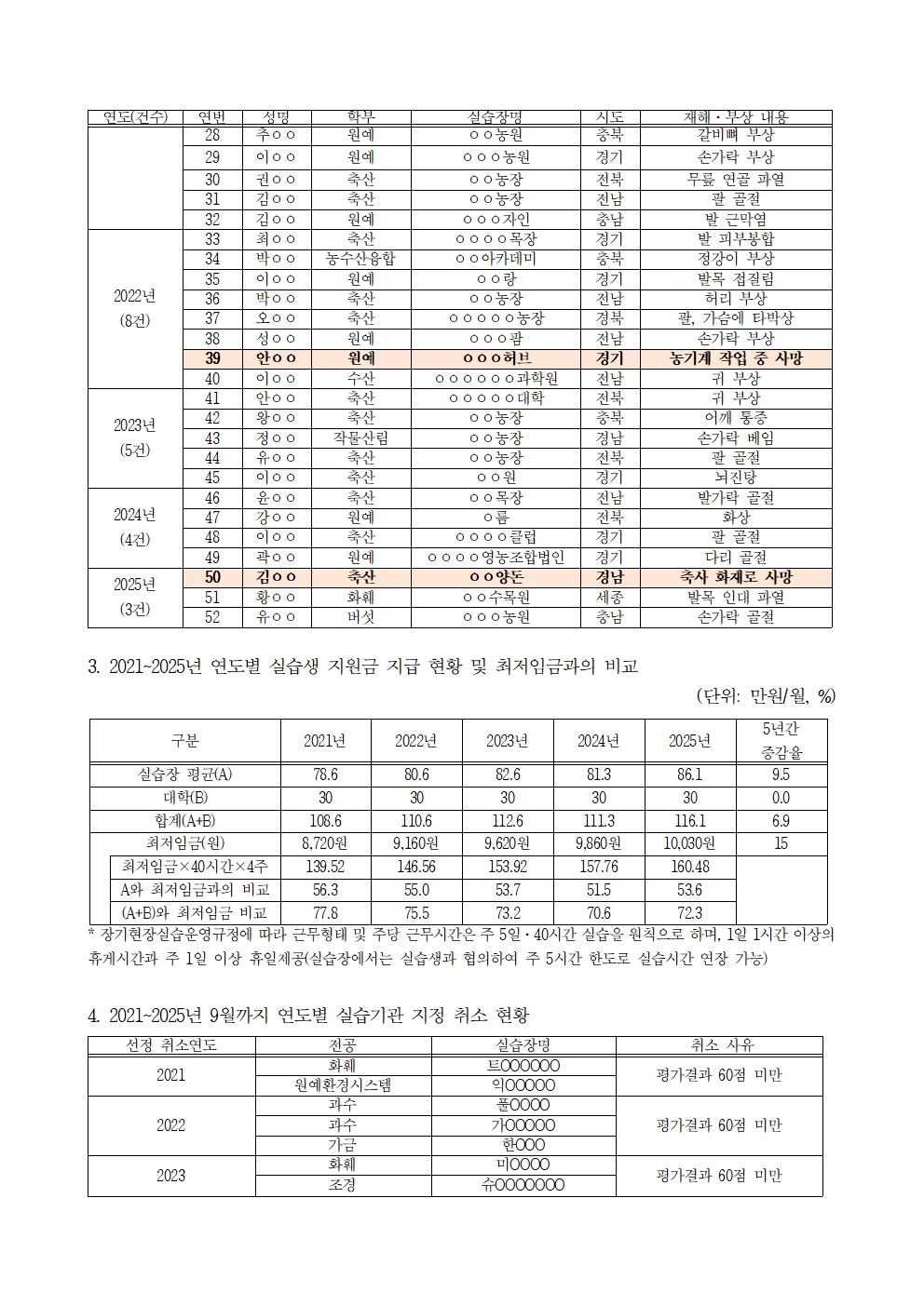 251021 [윤준병 의원 국정감사 보도자료] 한국농수산대 교육 빙자한 ‘위험노동’...10년간 현장실습서 52명 사상.hwp