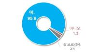 사회서비스원 서비스 계속 이용할 의향이 있는지 파악하는 질문에 전체 응답자의 95.6%가 ‘그렇다’고 응답했다. ‘의향 없음’은 1.3%, ‘잘 모르겠다’는 3.1%에 불과했다.
