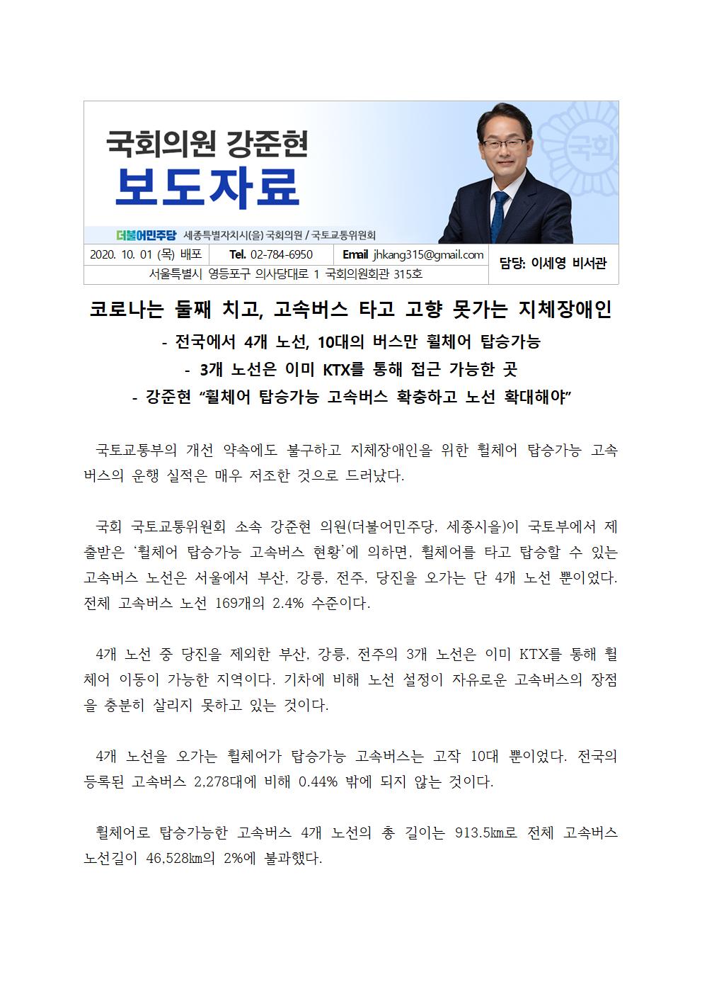 201001_강준현국정감사보도자료_코로나는_둘째_치고_고속버스_타고_고향_못가는_지체장애인.hwp