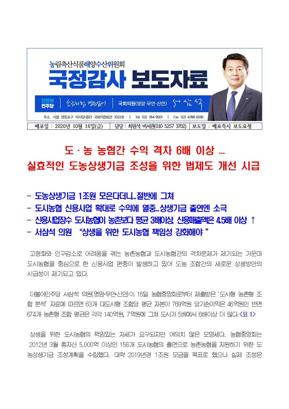 201016서삼석_의원실_국정감사_보도자료_도_농_농협간_수익_격차_6배_이상___도농상생기금_조성을_위한_법제도_개선해야(최종).hwp