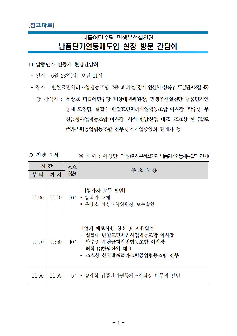 [보도자료] 더불어민주당 민생우선실천단, 납품단가연동제 도입 현장간담회 개최