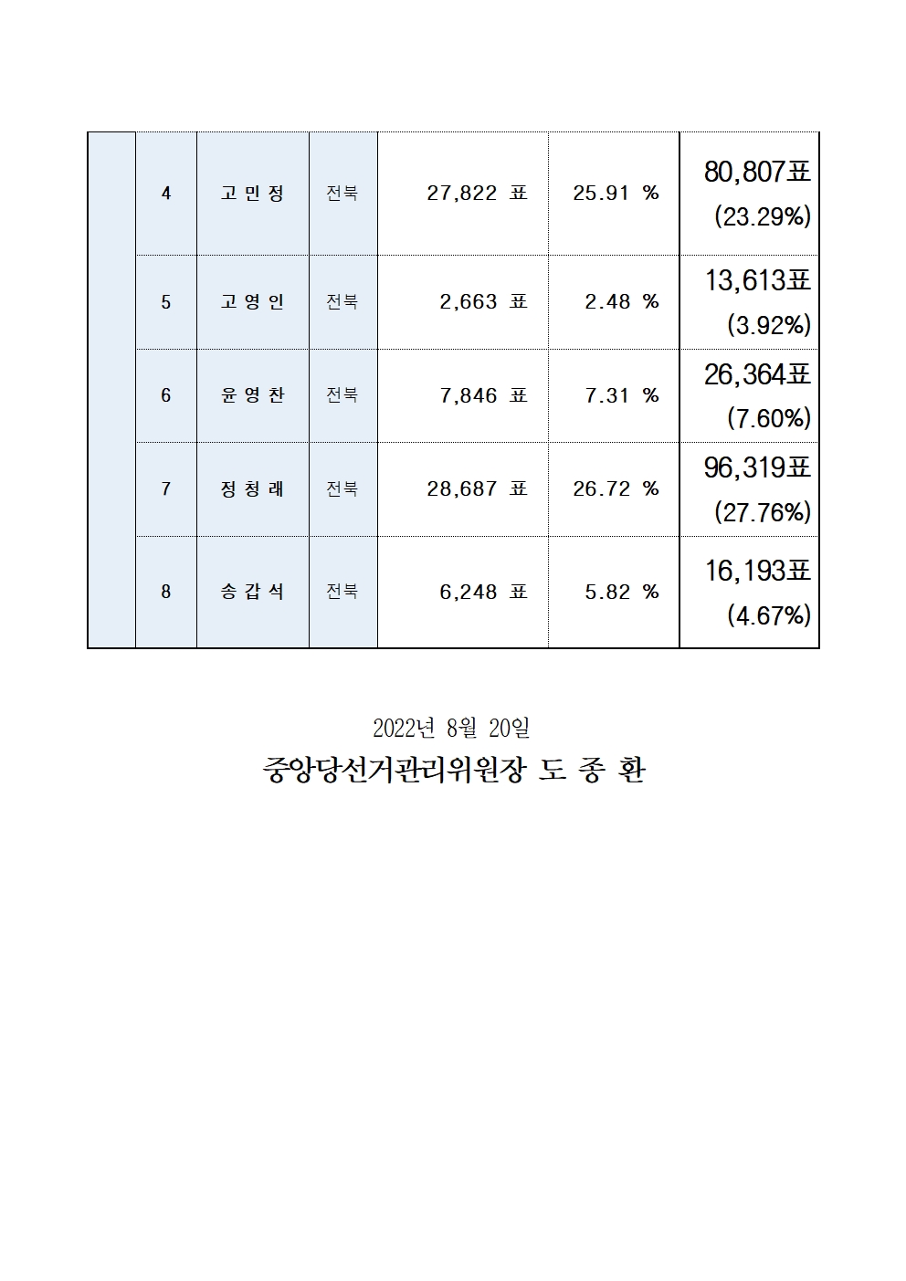 [보도자료] 당대표‧최고위원 선출 순회경선(전북) 권리당원 투표결과