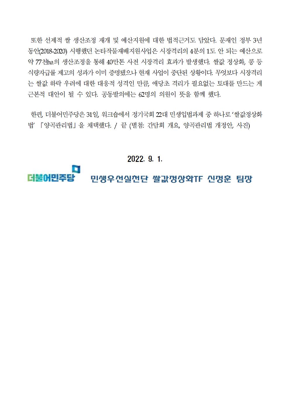 220901_보도자료_쌀값정상화TF_간담회_개최_쌀값_폭락_원인_진단_및_쌀값_정상화_정책_제안.hwp