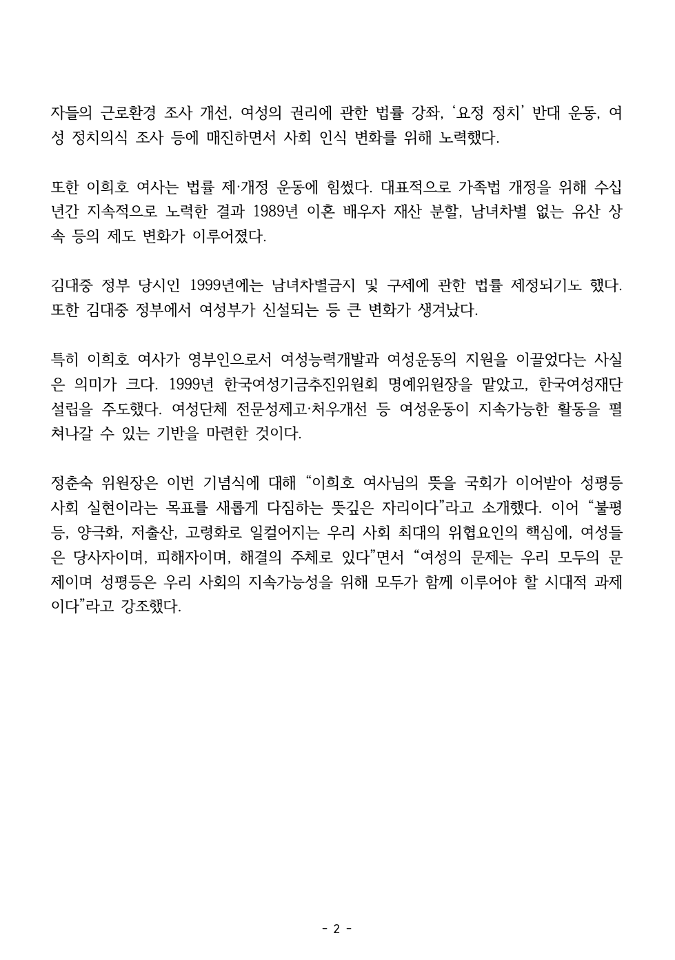 [보도자료]여성·인권운동가 이희호여사 탄생100주년 기념식·사진전 개최