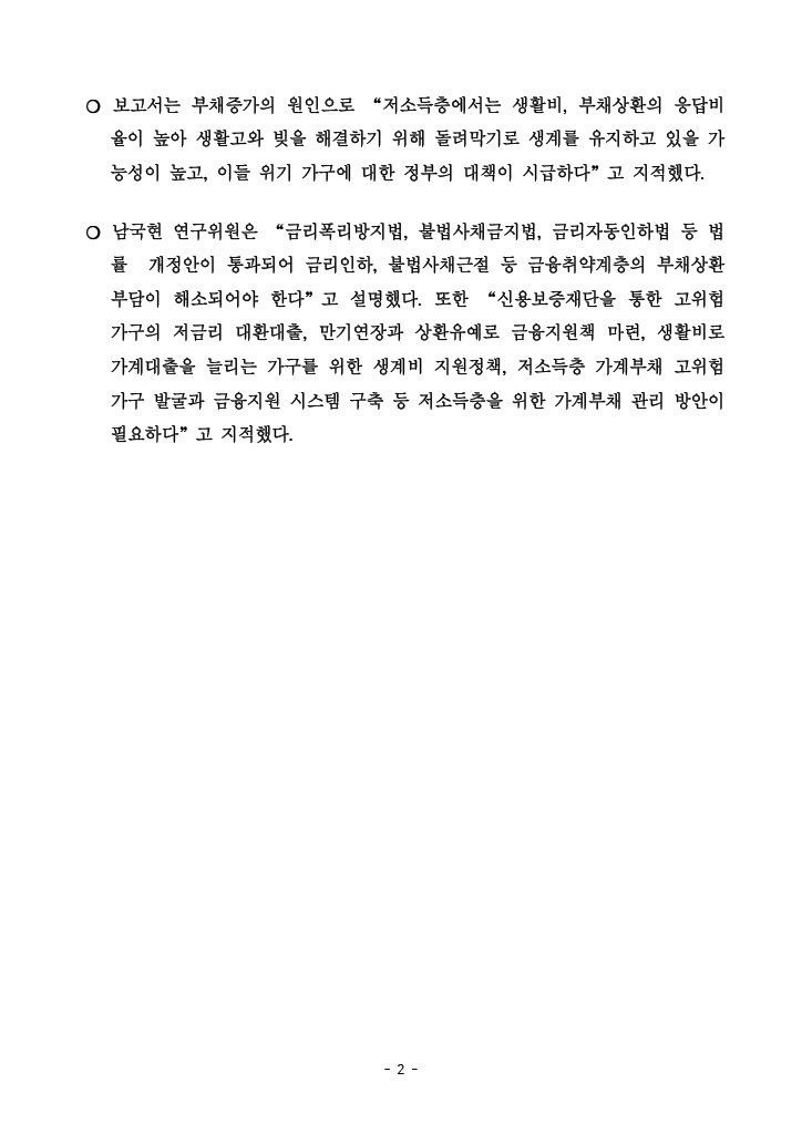 [정책브리핑 및 보도자료] 더불어민주당 민주연구원, 위기의 가계부채, 특단의 가계지원 대책을 마련하라