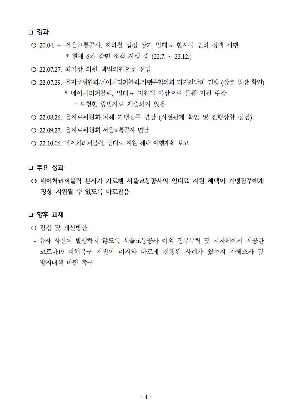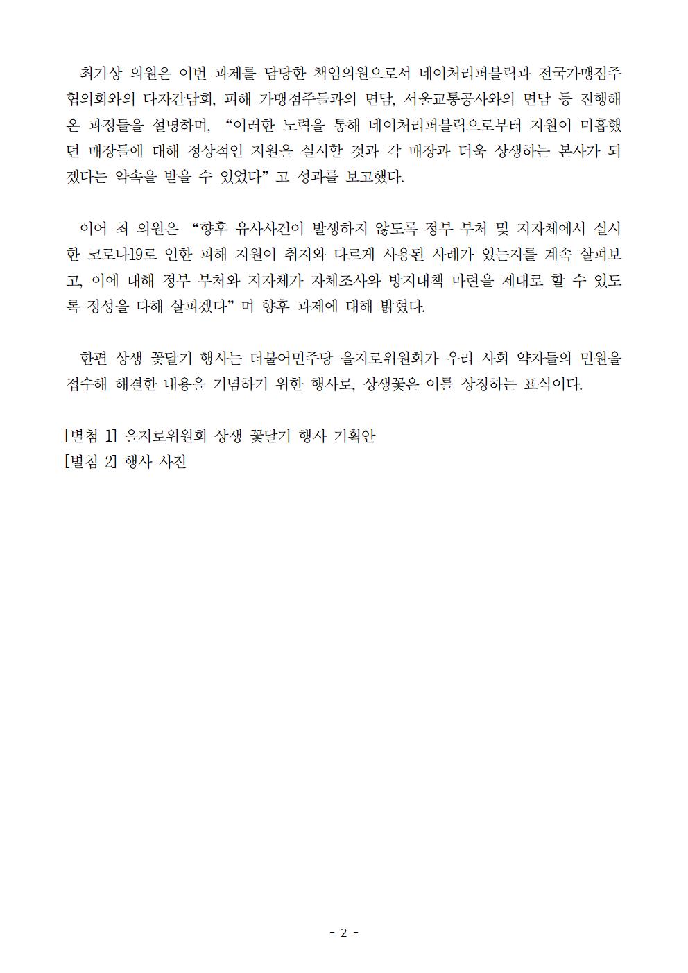 [보도자료] 더불어민주당 을지로위원회, 사각지대에 가려진 네이처리퍼블릭 점주 지원 문제 해결