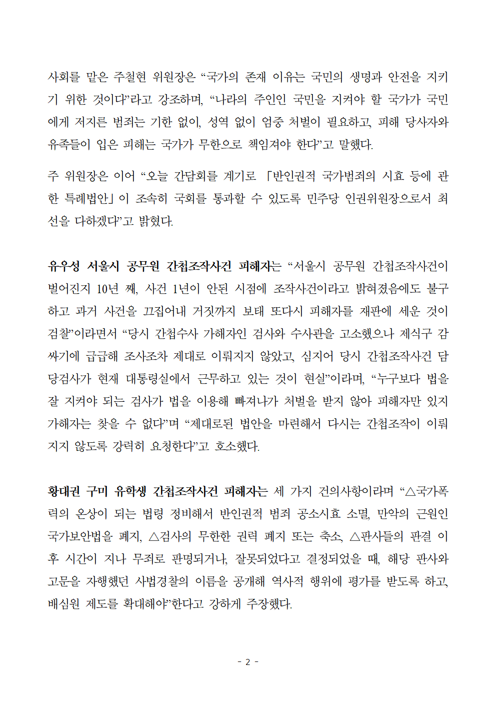 [보도자료] 더불어민주당 인권위원회, 국가폭력피해자 간담회 개최 완료