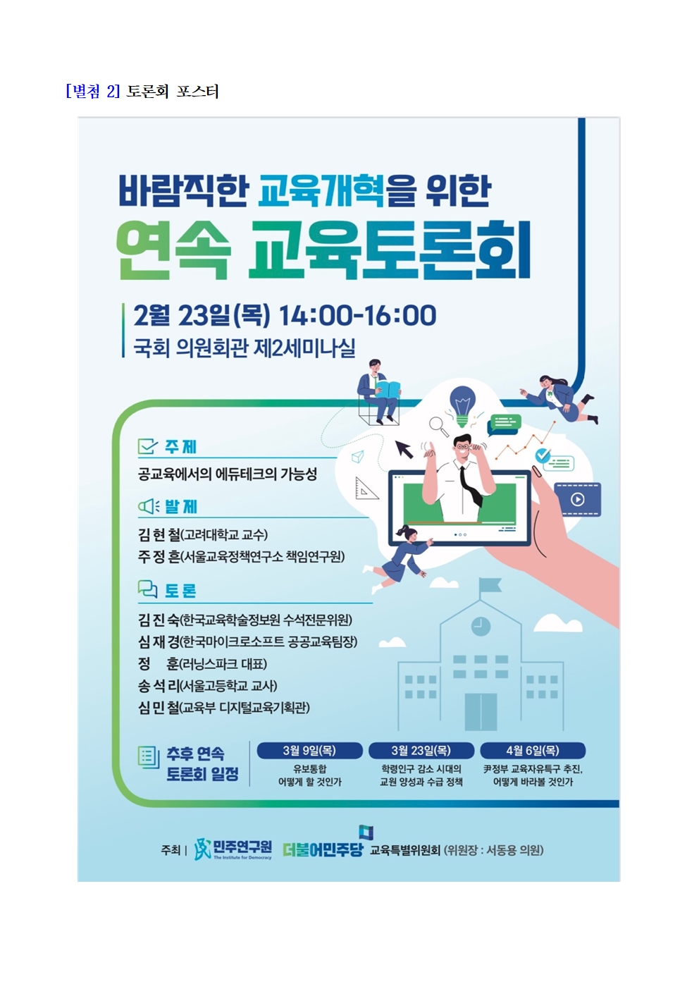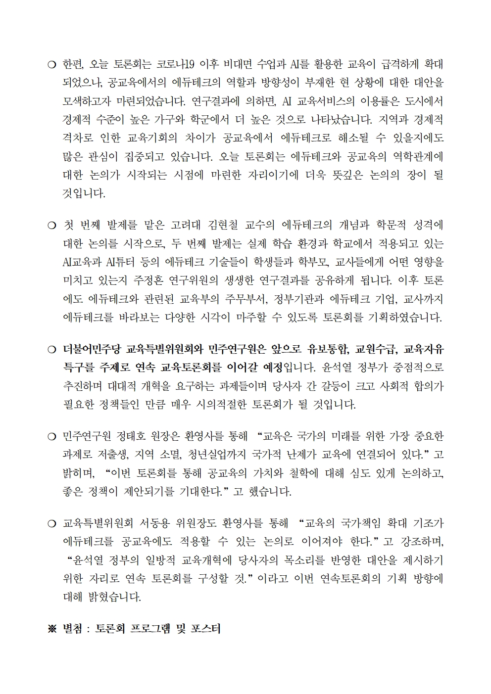 [보도자료] 더불어민주당 민주연구원ㆍ교육특별위원회, “공교육에서의 에듀테크의 가능성” 토론회 개최