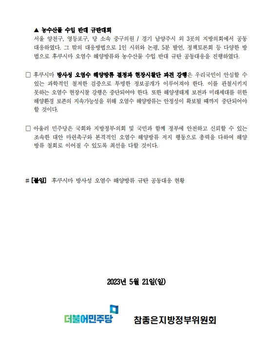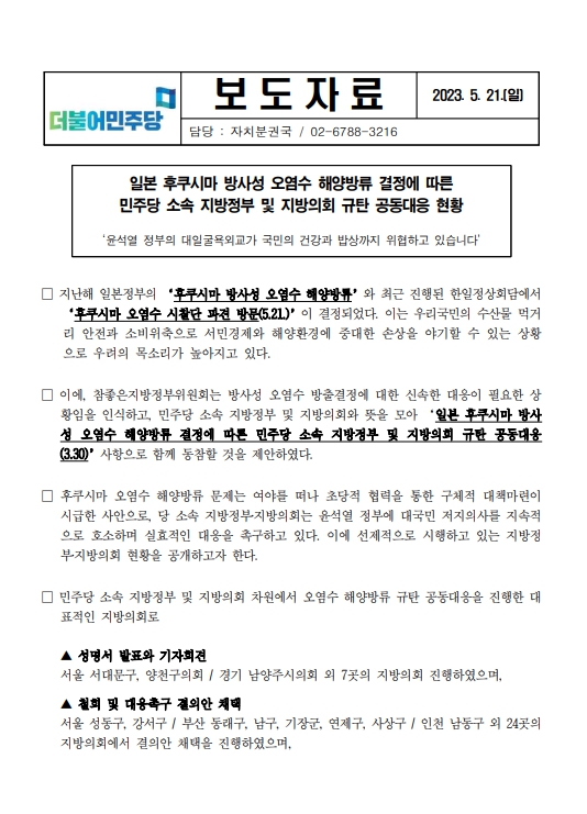 (보도자료)_230521_일본_후쿠시마_방사성_오염수_해양방류_결정에_따른_민주당_소속_지방정부_및_지방의회_규탄_공동대응_현황_공개_fn_1.pdf