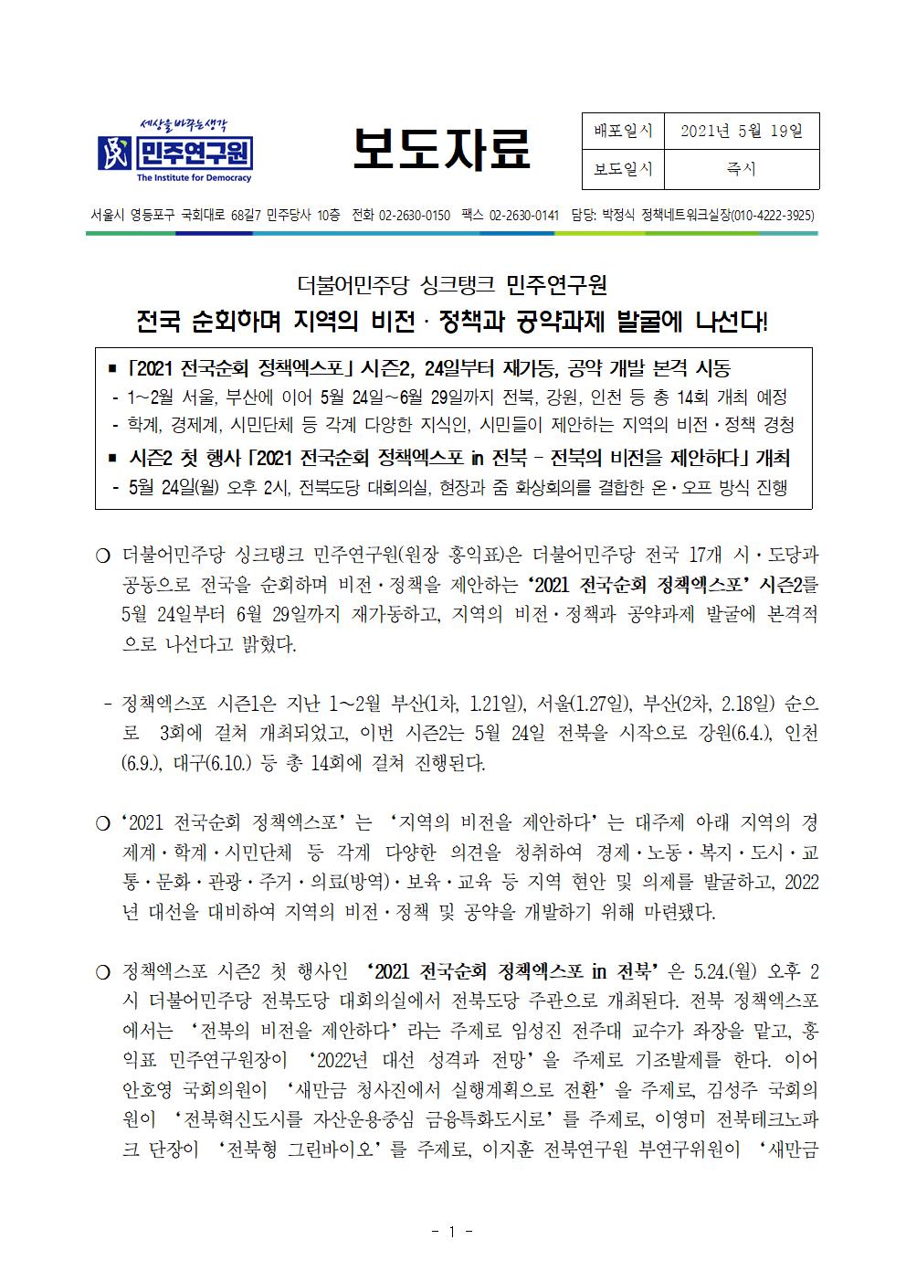 210519_민주연구원_보도자료_전국순회_정책엑스포(시즌2).hwp