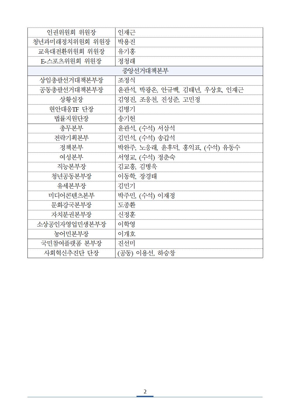 더불어민주당 대한민국 대전환 제20대 대통령선거 선거대책위원회 2차 인선