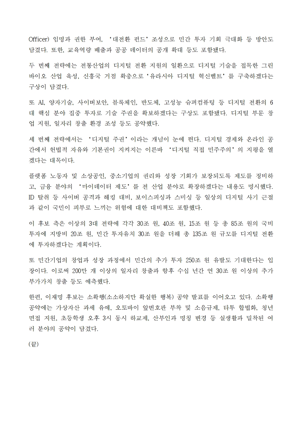 [보도자료] 이재명 대통령 후보, '디지털 전환성장' 공약 발표