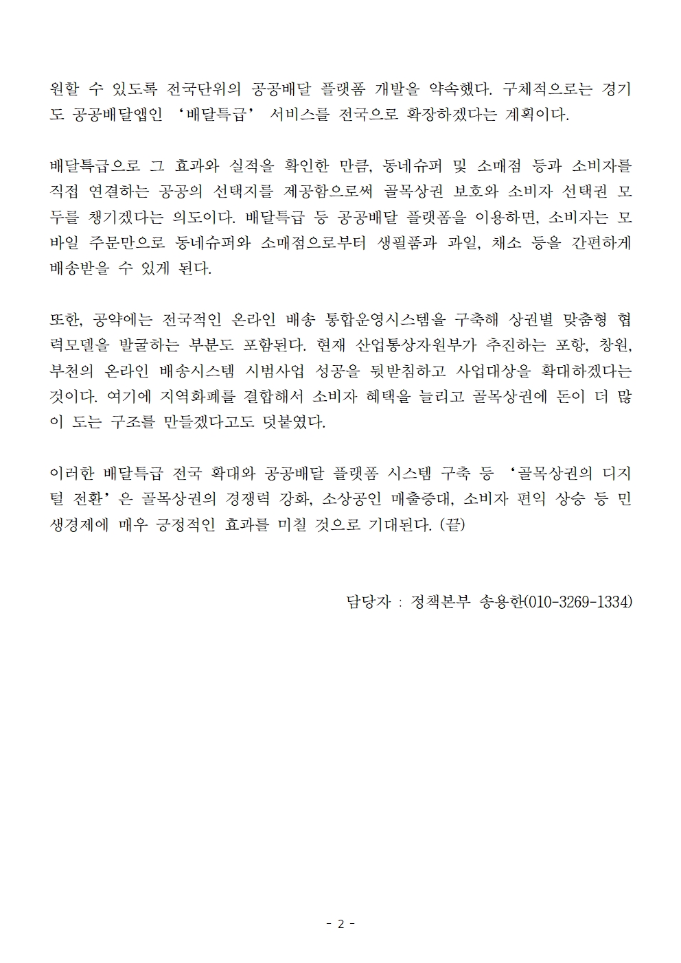 [보도자료] 더불어민주당 선대위 정책본부, '이재명의 합니다. 소확행 공약 시리즈 15' 동네슈퍼 퀵커머스 구축