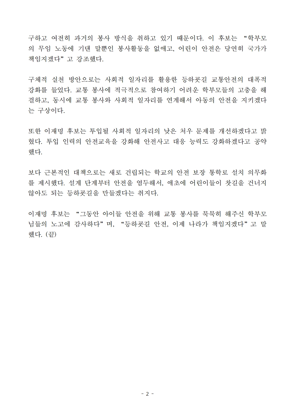 [보도자료] 더불어민주당 선대위 정책본부, '이재명의 합니다. 소확행 공약 시리즈 22' 어린이 등하굣길 교통안전 공약