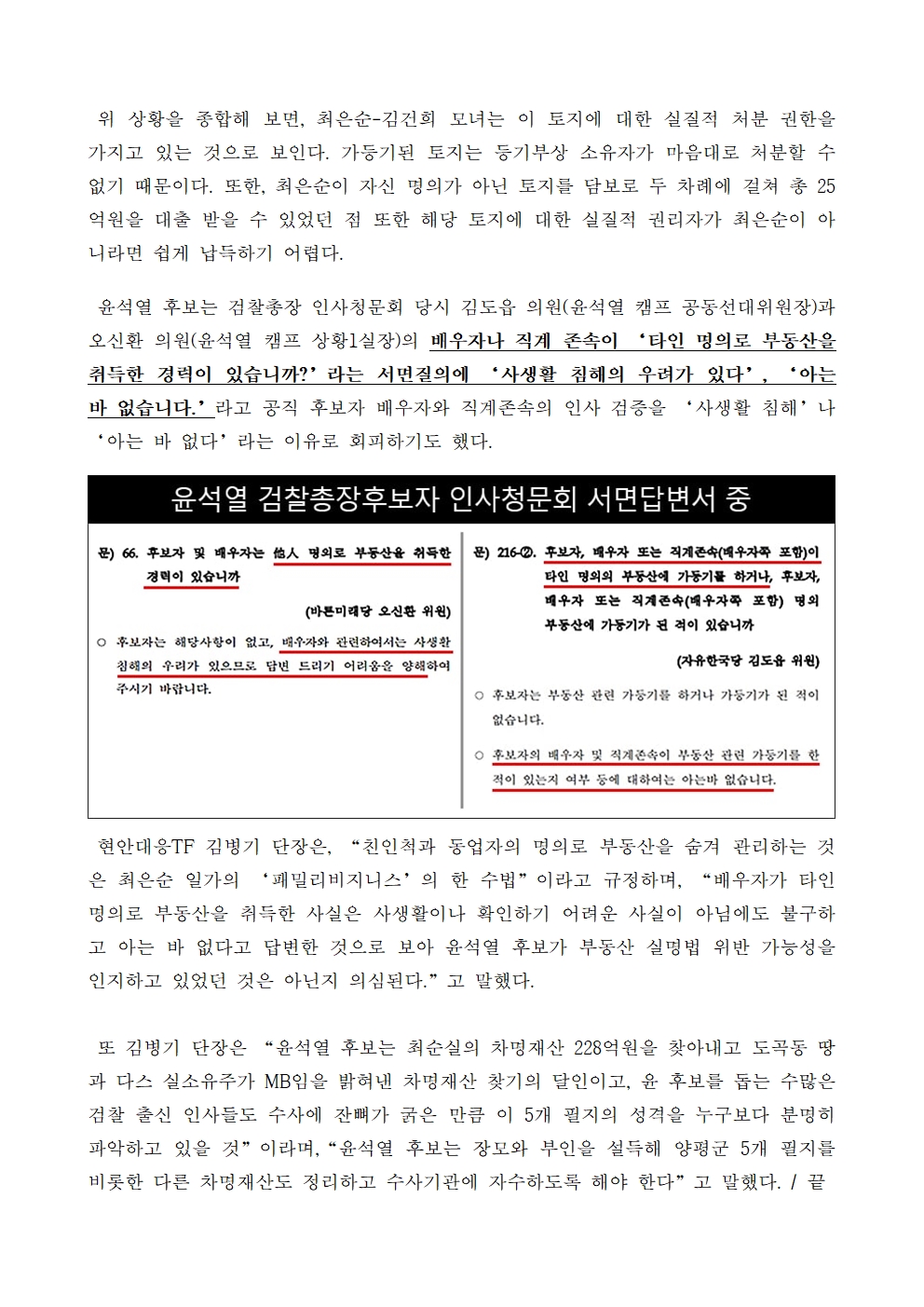 [보도자료] 김건희 일가 양평 5개 필지 차명 의혹 밝혀야