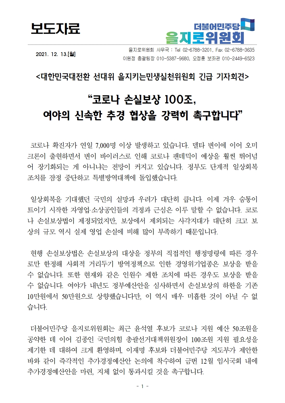 211213_보도자료_대한민국대전환선대위_을지로위원회_코로나손실보상_100조_추경협상_촉구_긴급_기자회견(최종).pdf