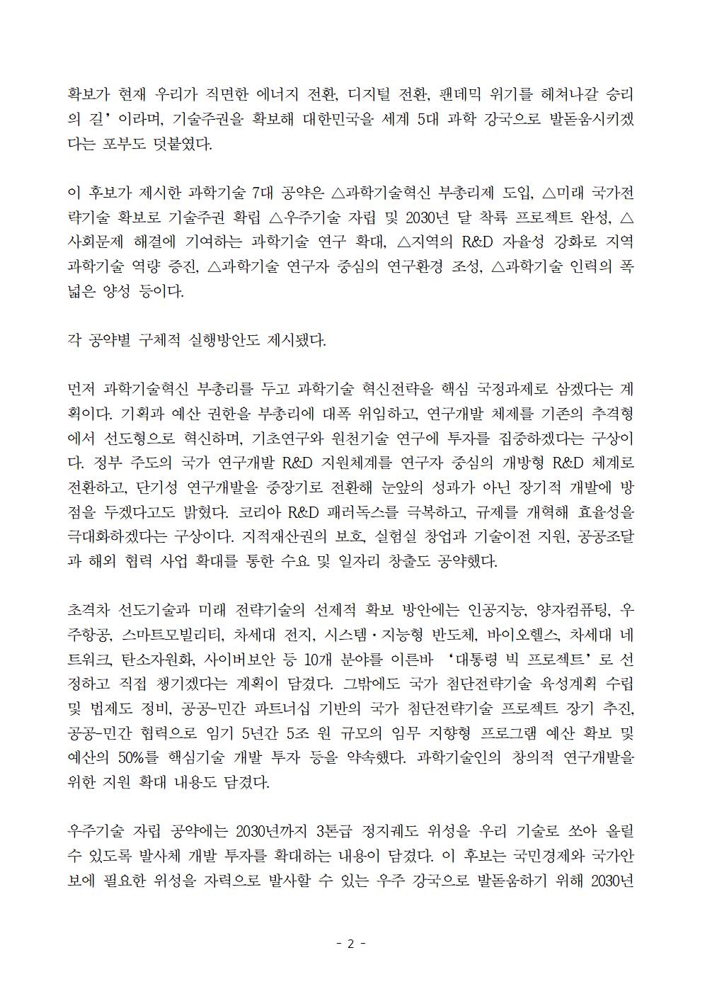 [보도자료] 더불어민주당 선대위 정책본부_이재명 후보 과학기술 7대 공약 발표_기술주권 확립과 과학기술 강대국 실현 비전 제시