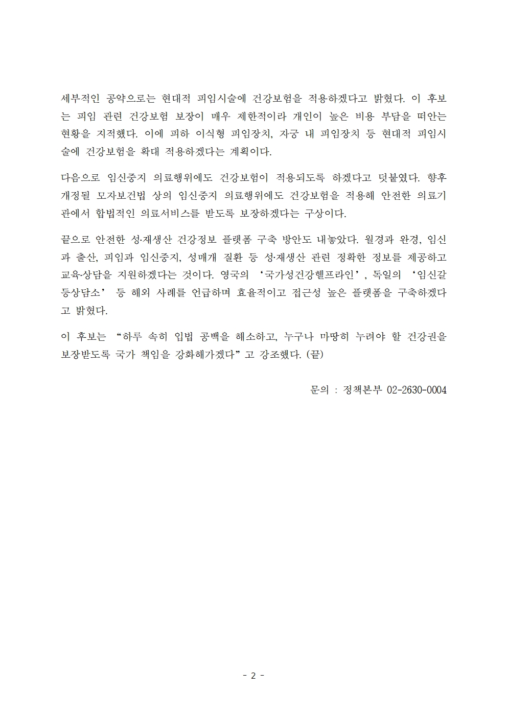 [보도자료] 더불어민주당 선대위 정책본부, '이재명의 합니다. 소확행 공약 시리즈 33' 성·재생산 건강권 보장 확대 공약