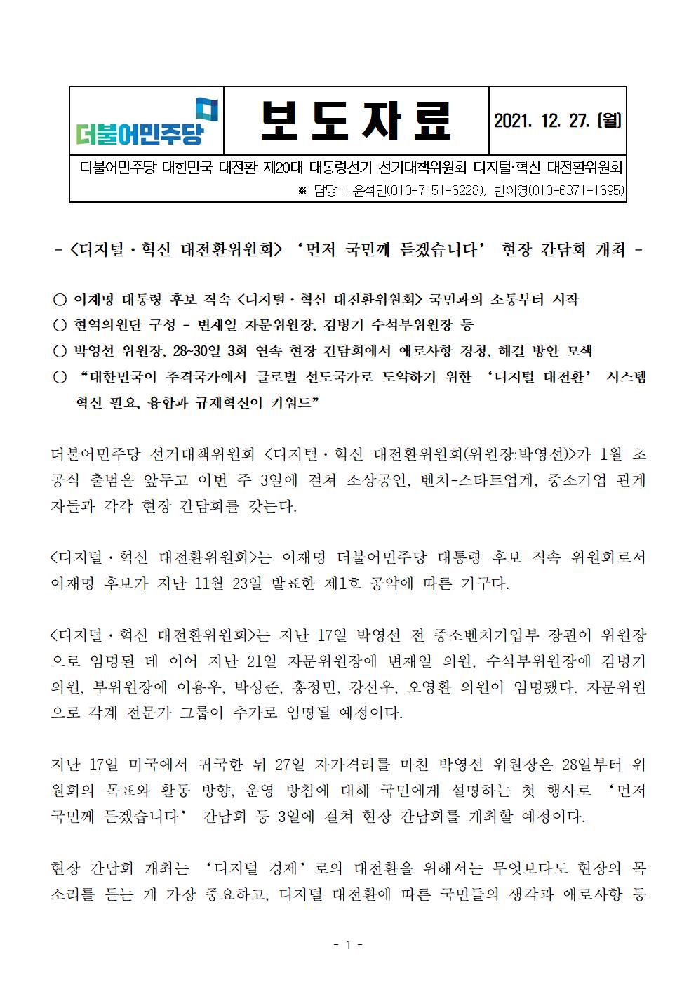 [보도자료] 더불어민주당 선대위 디지털·혁신 대전환위원회_ 현장 간담회 개최