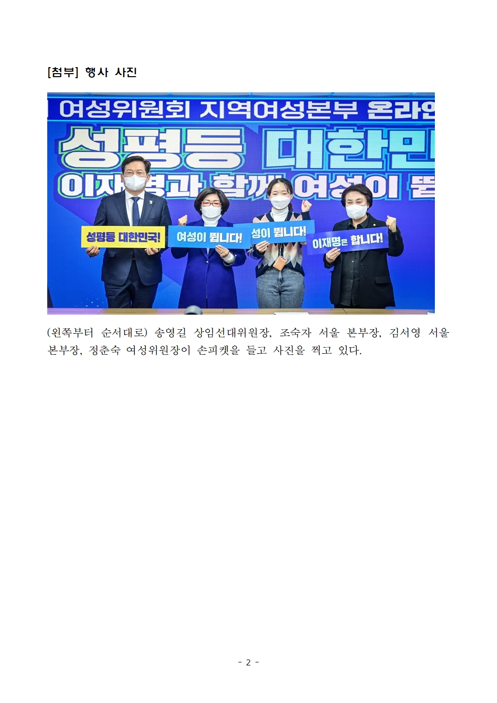[보도자료] 더불어민주당 선대위 여성위원회, 지역여성본부 온라인 발대식 개최
