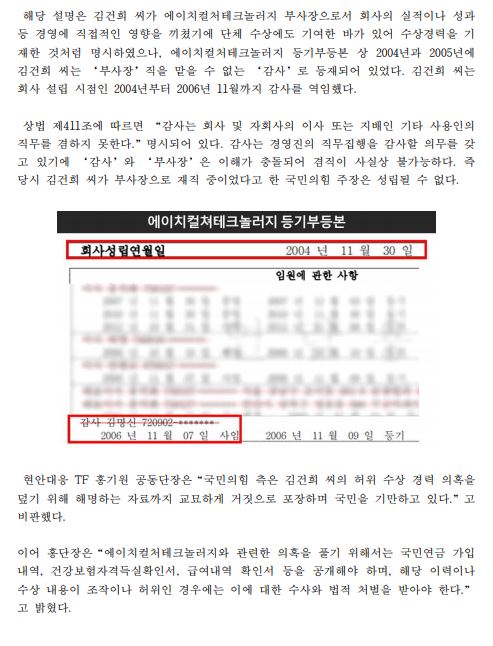 [보도자료] 김건희 씨 스펙만들기용 회사 에이지컬쳐 부사장 직위로 서울대에 이어 고려대 최고위과정 입학 의혹