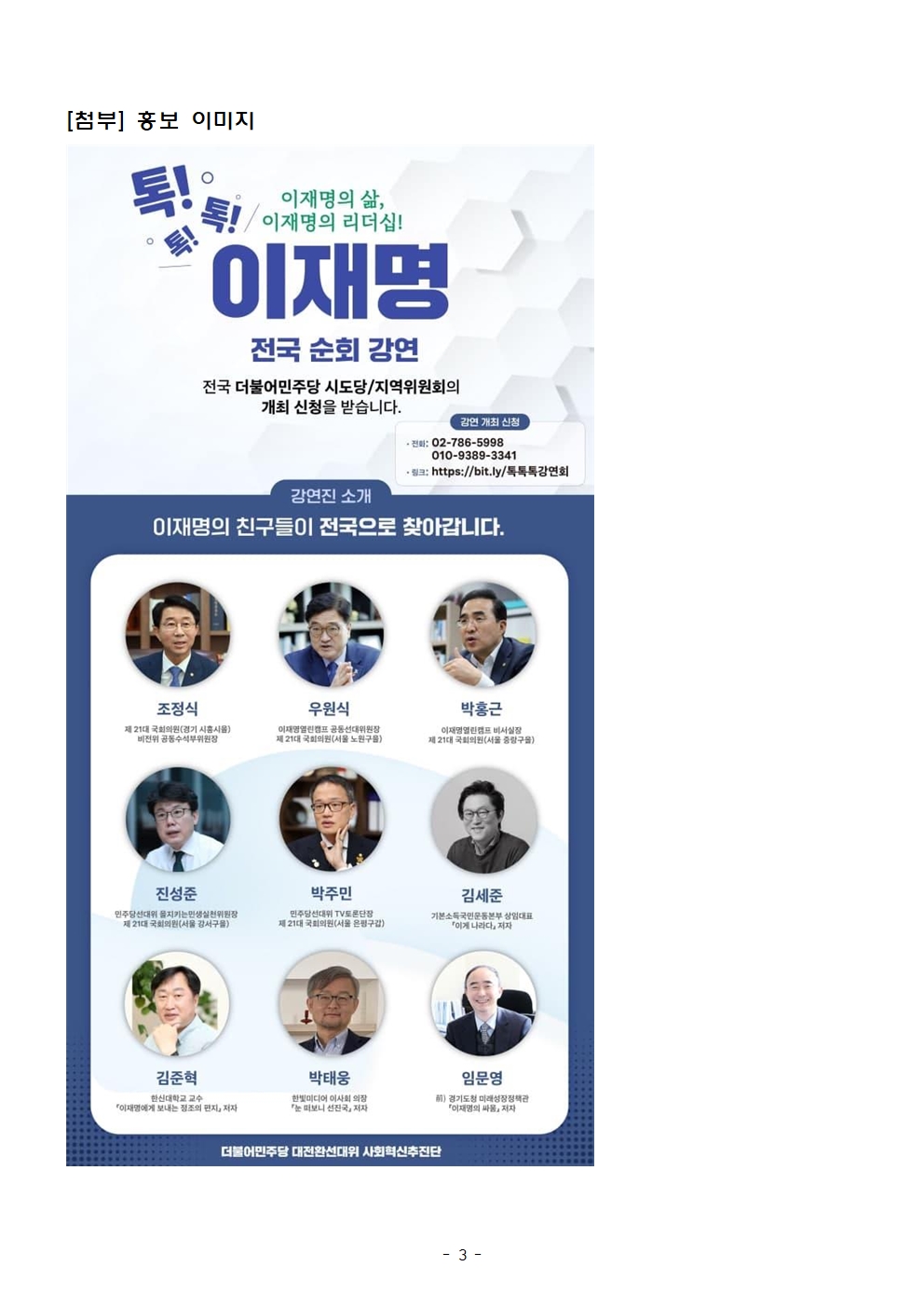 [보도자료] 더불어민주당 선대위 사회혁신추진단, '톡톡톡 이재명 전국 순회 강연회' 순항 중