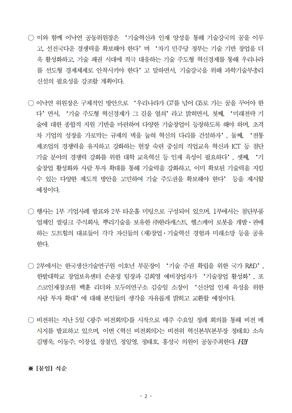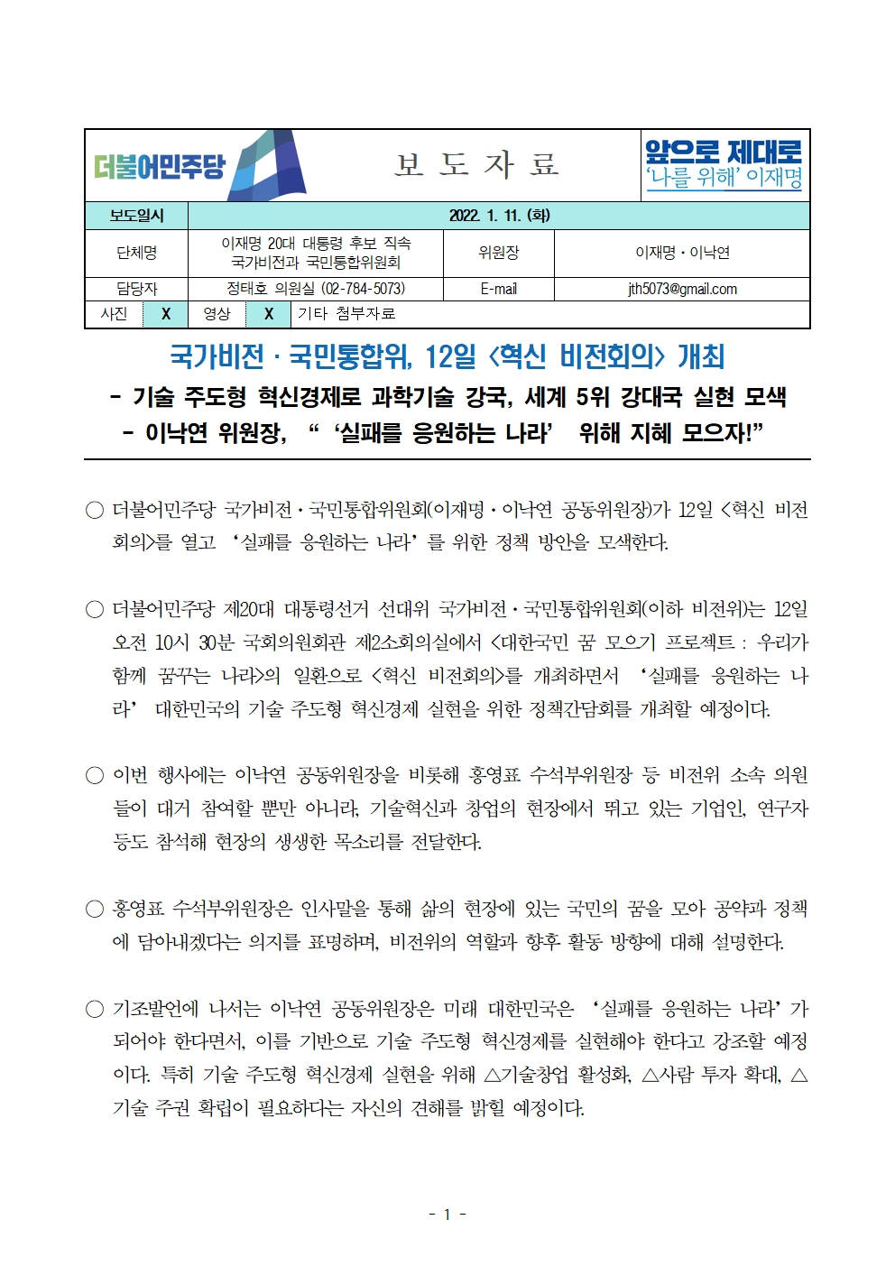 [보도자료] 더불어민주당 선대위 국가비전과 국민통합위원회, 혁신 비전회의 개최