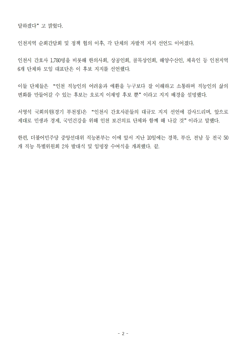 [보도자료] 더불어민주당 선대위 직능본부, 전국 순회간담회 돌입