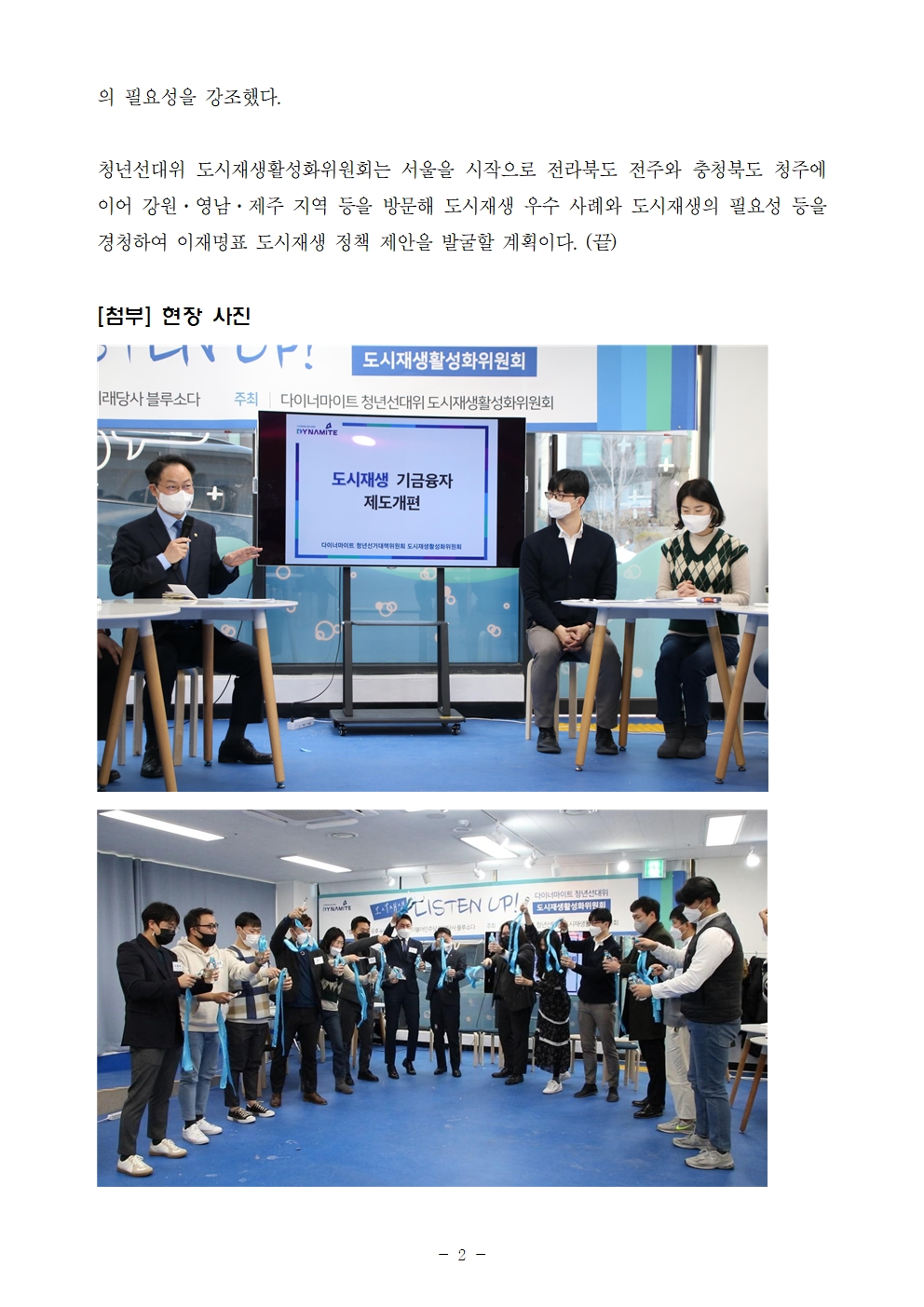 [보도자료] 더불어민주당 다이너마이트 청년선대위, 도시재생활성화위원회 발대식 및 전국 순회 정책 간담회 개최