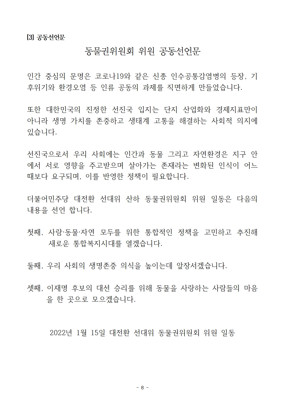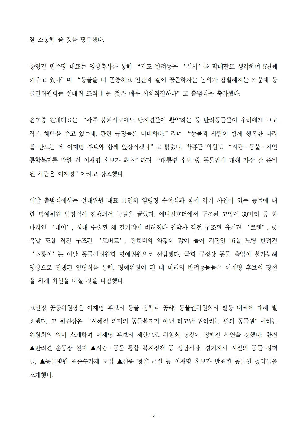 [보도자료] 더불어민주당 선대위 동물권위원회 출범식 개최