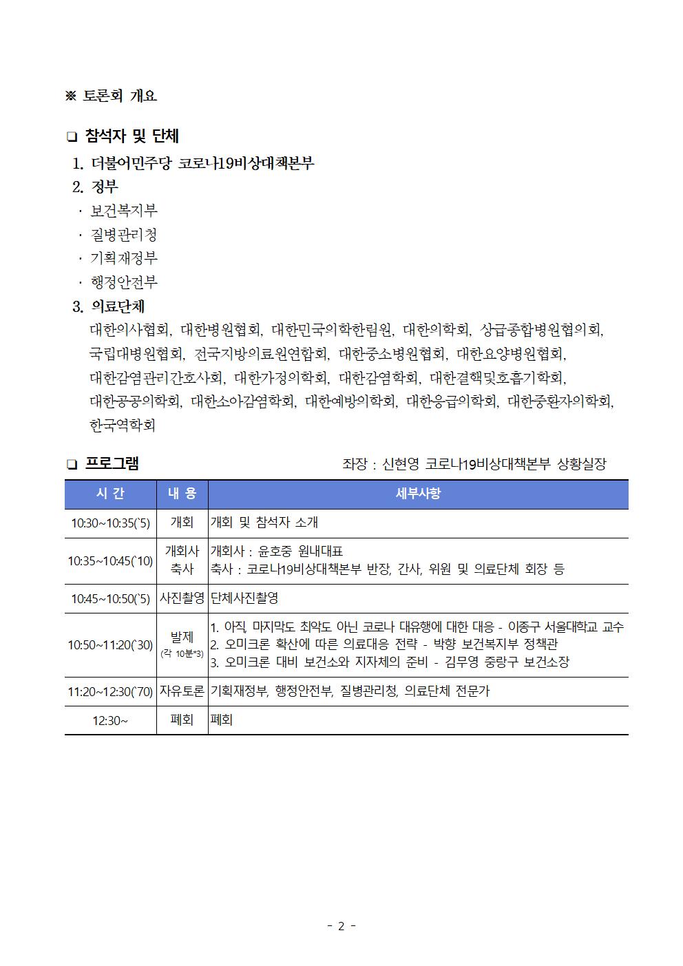[보도자료] 더불어민주당 코로나19 비상대책본부 오미크론 대비 코로나 19 장기전 의료체계 대토론회 개최