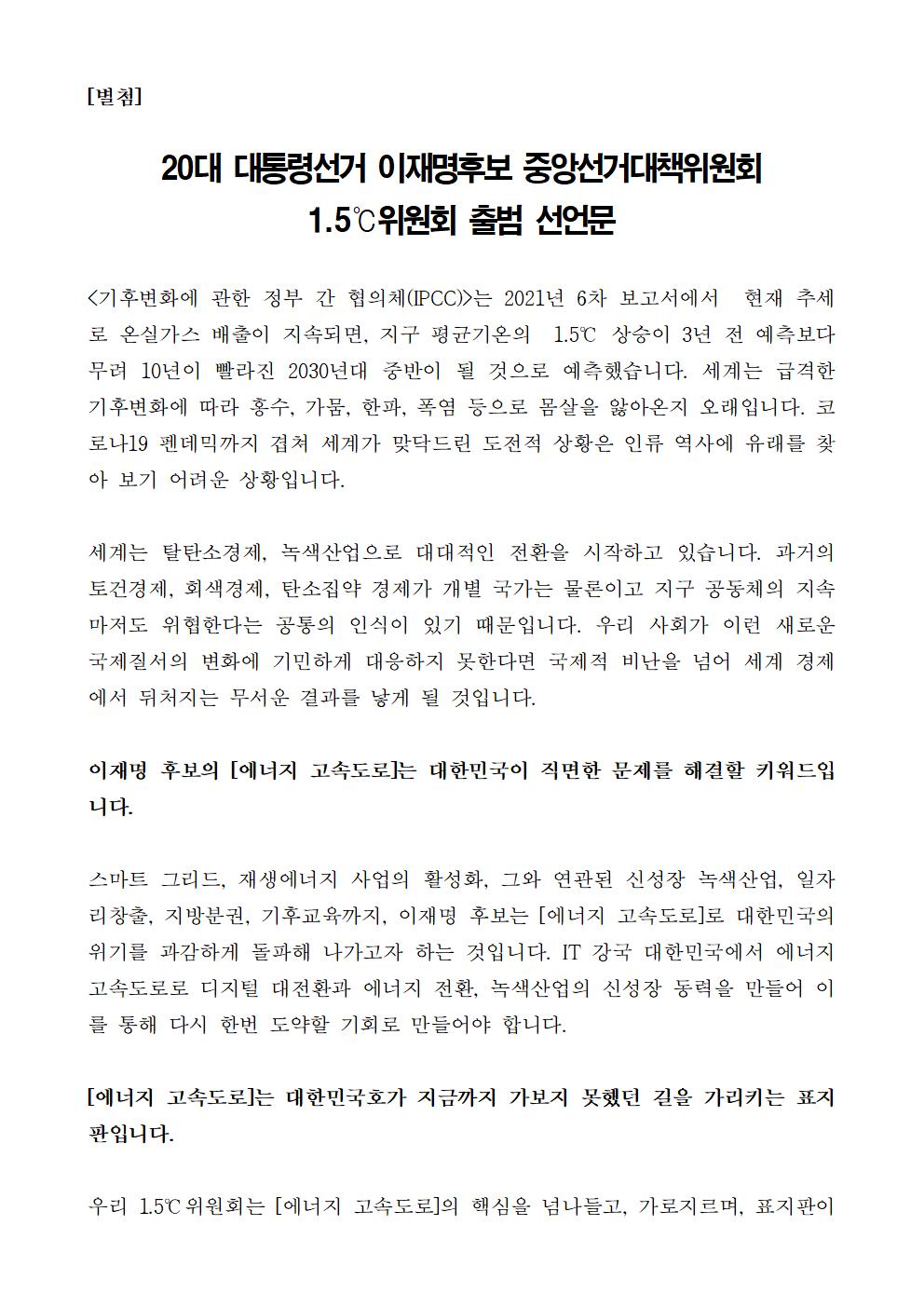 [보도자료] 더불어민주당 선대위 1.5 위원회 출범