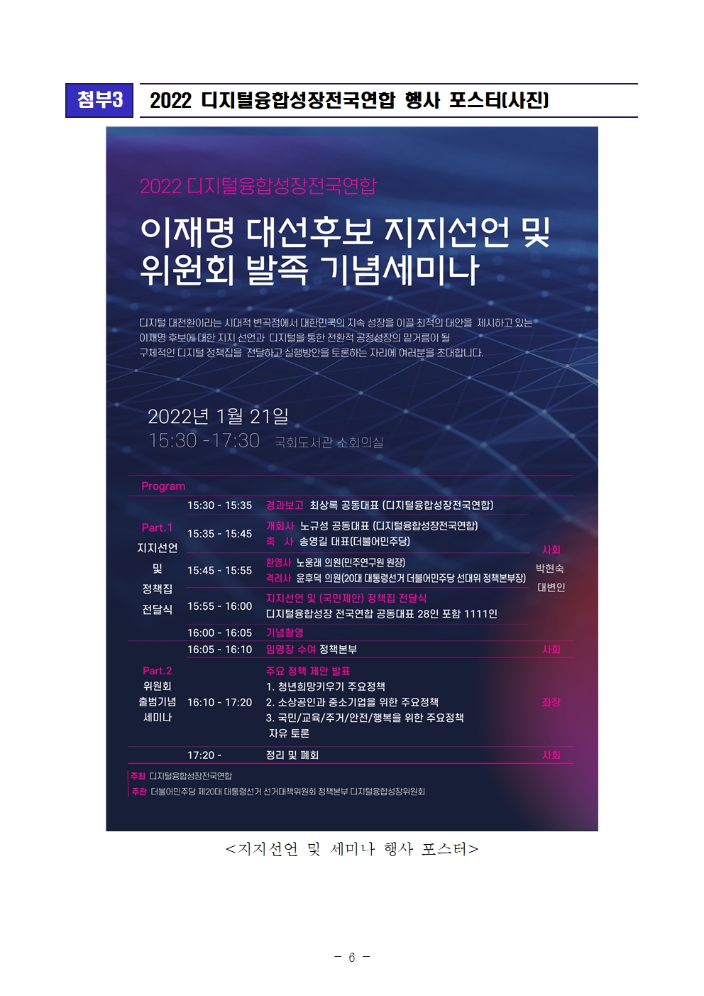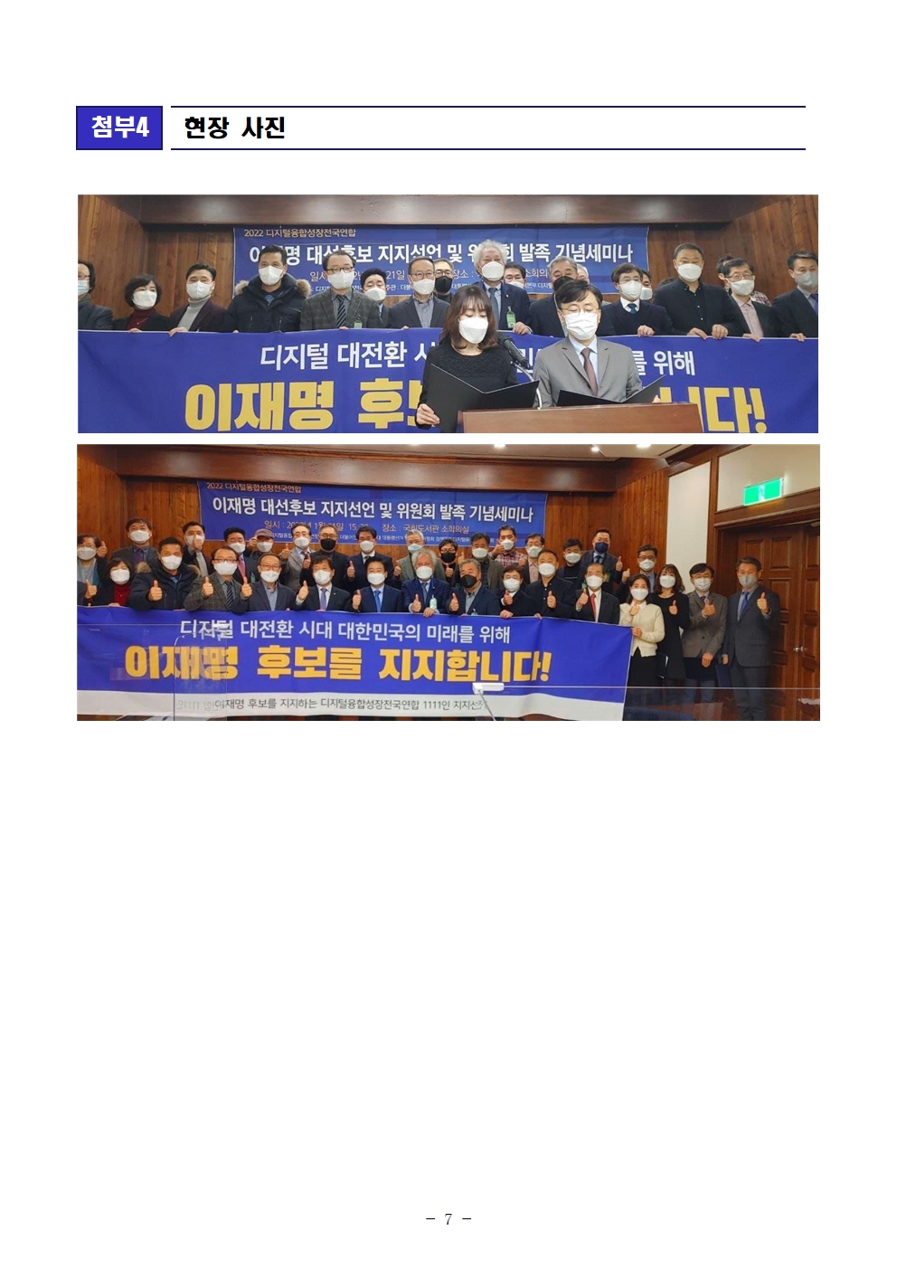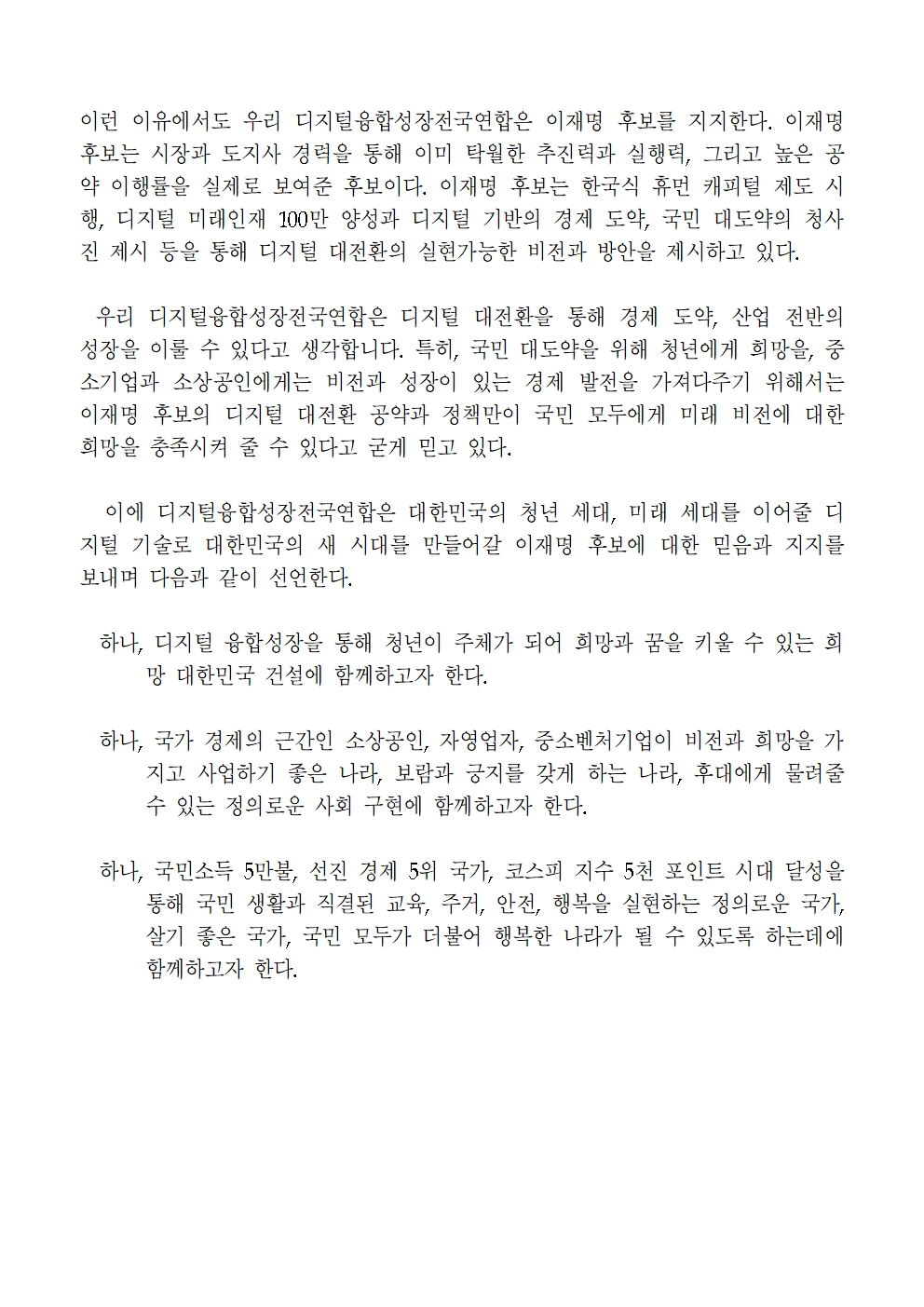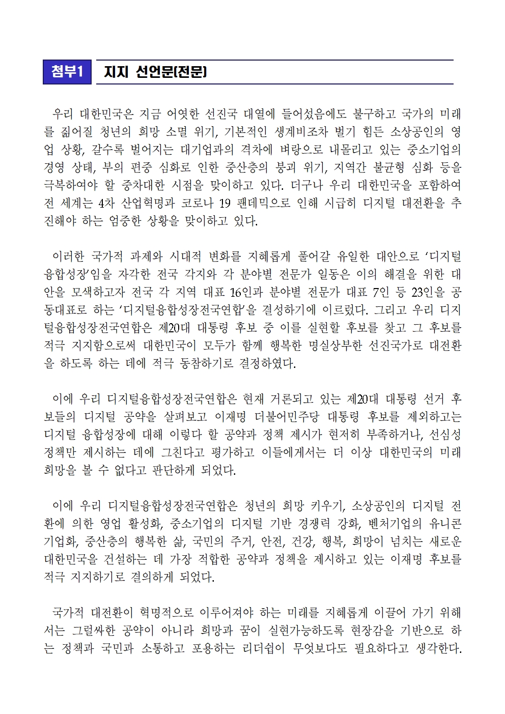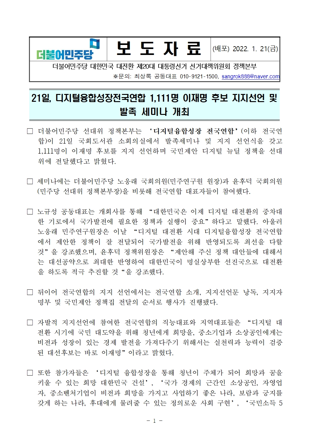 [보도자료] 더불어민주당 선대위 정책본부, 디지털융합성장전국연합 1,111명 이재명 후보 지지선언 및 발족 세미나 개최