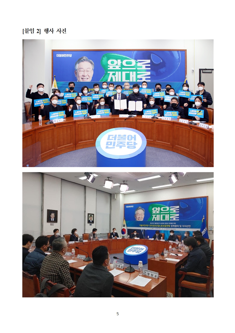 [보도자료] 더불어민주당 선대위 노동위원회, 전국공공산업노동조합연맹 정책협약 및 지지선언