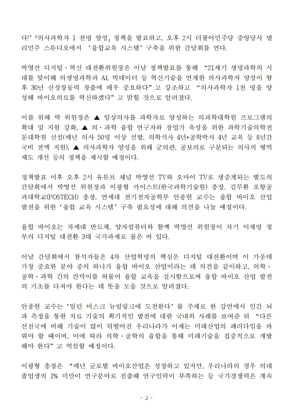[보도자료] 더불어민주당 선대위 디지털·혁신 대전환위원회 정책발표 및 간담회 개최