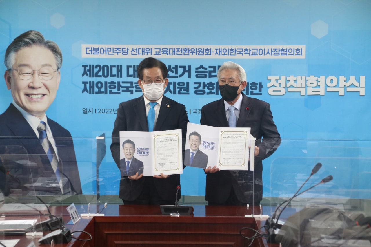 [보도자료] 더불어민주당 선대위 교육대전환위원회, 재외한국학교이사장협의회와 재외한국학교 지원 강화를 위한 정책협약식 개최