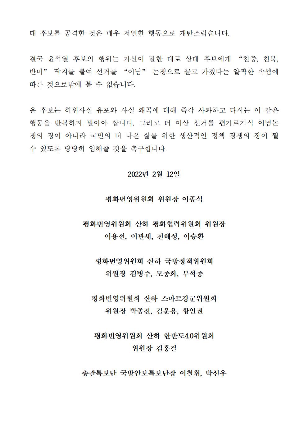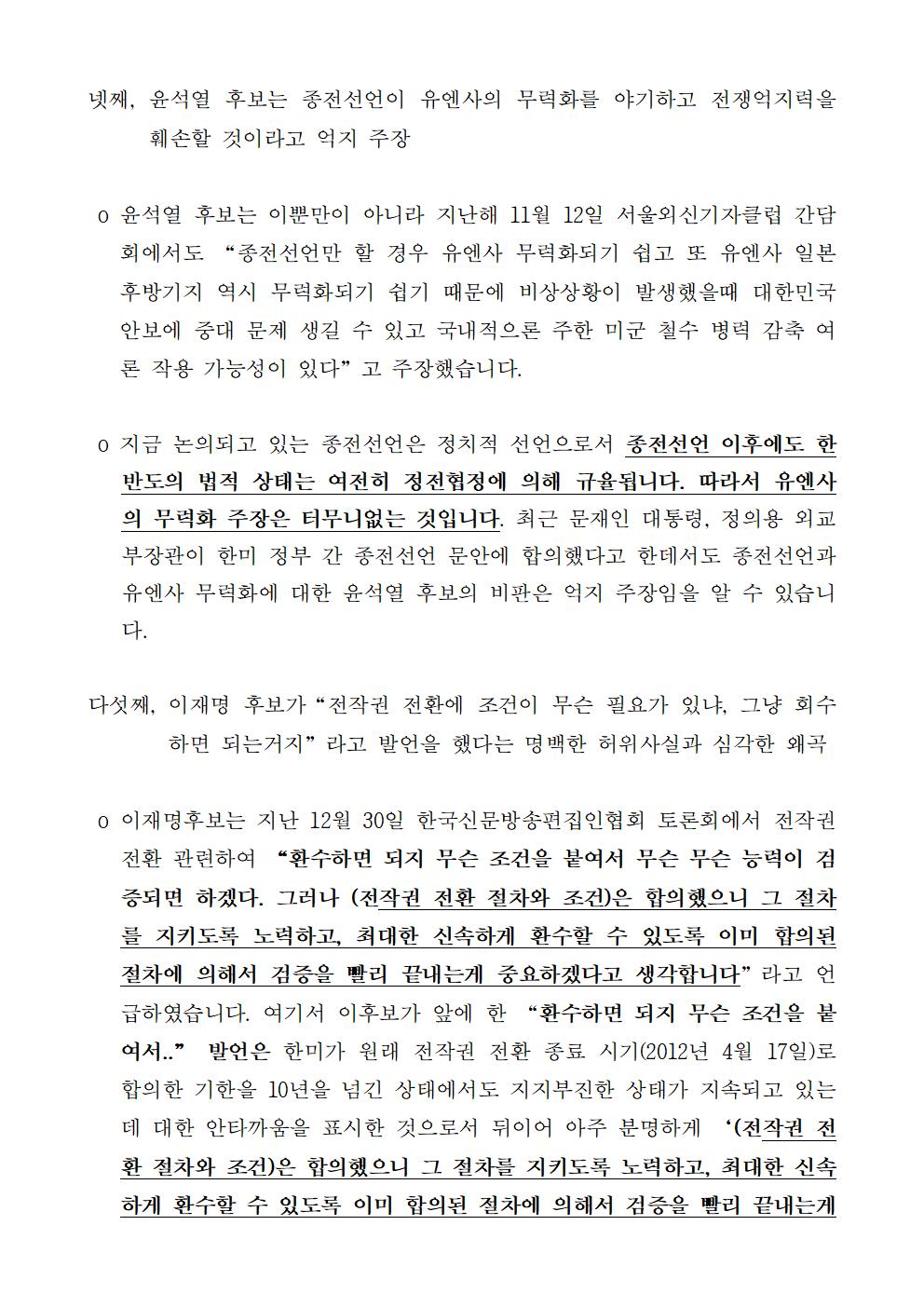 [기자회견문] 더불어민주당 선대위 평화번영위원회 TV토론 대한 팩트체크