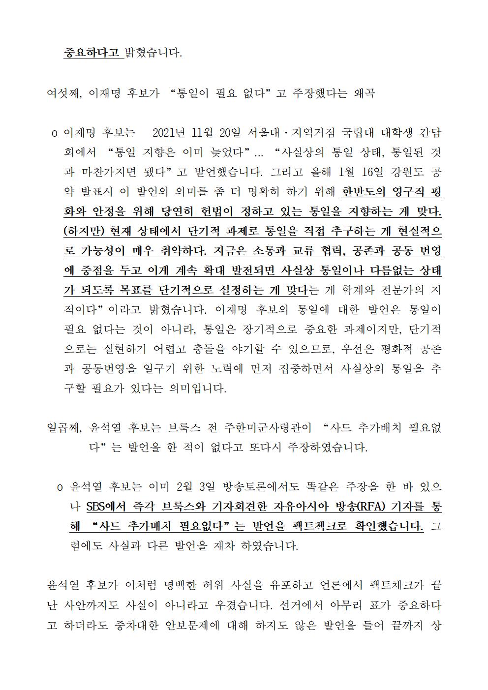 [기자회견문] 더불어민주당 선대위 평화번영위원회 2차 TV토론 외교안보 관련 팩트체크