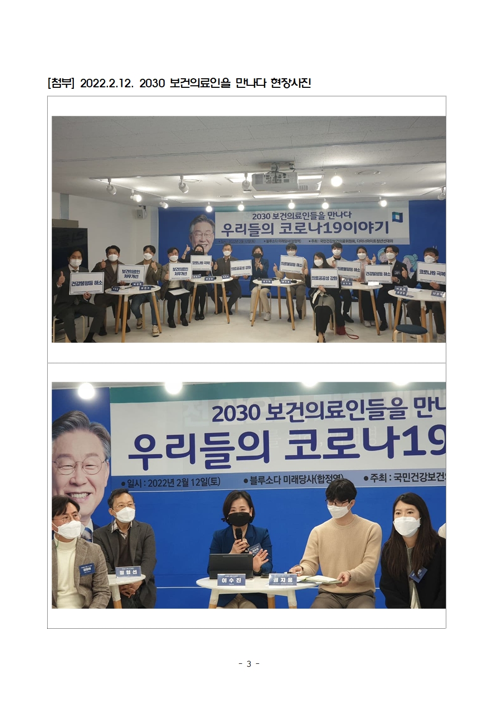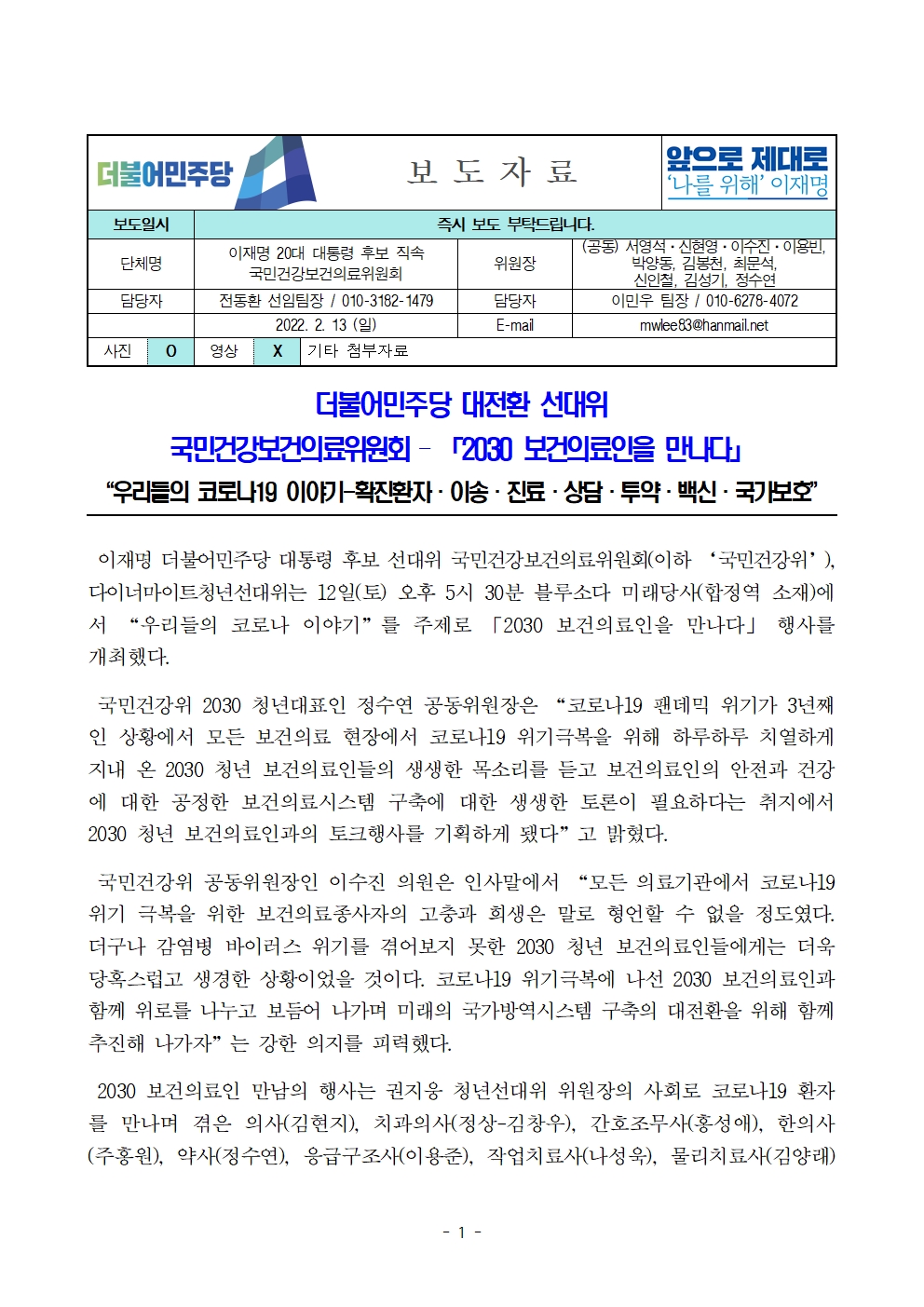 [보도자료] 더불어민주당 선대위 국민건강보건의료위원회, '2030 보건의료인을 만나다' 행사 개최