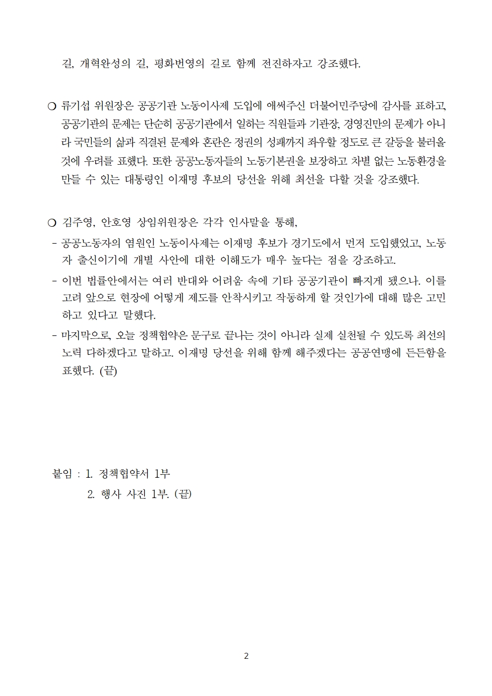[보도자료] 더불어민주당 선대위 노동위원회, 한국노총 공공연맹 정책협약식 및 지지선언