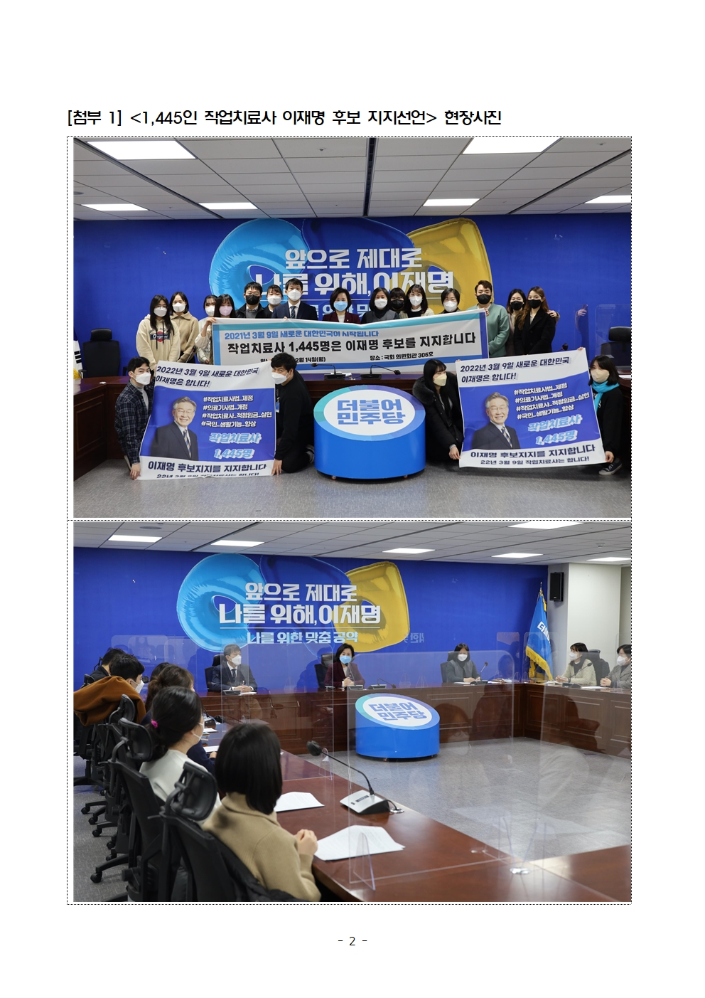 [보도자료] 더불어민주당 선대위 국민건강보건의료위원회, 보건의료전문가 직업치료사와 만남 가져