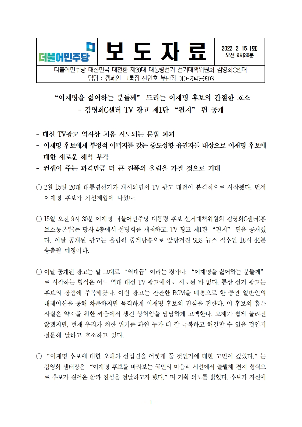 220215_TV광고1차_편지편이재명을싫어하는분들께_보도자료_이재명캠프_김영희C센터.pdf