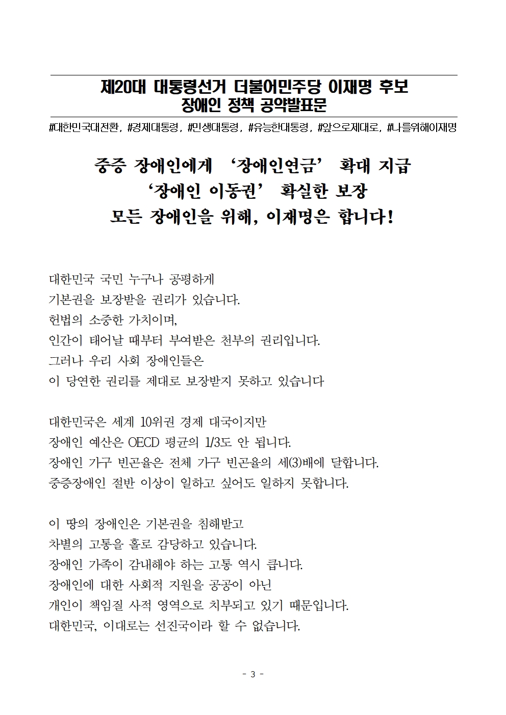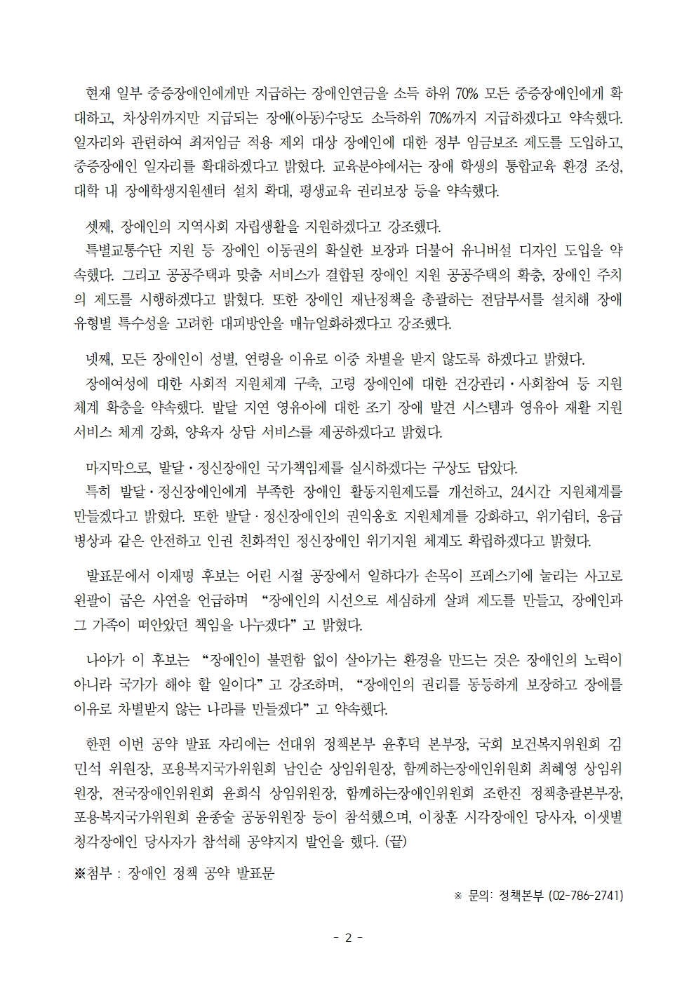 [보도자료] 더불어민주당 선대위 정책본부·전국장애인위원회·포용복지국가위원회·함께하는장애인위원회, 장애인 정책 공약 종합 발표