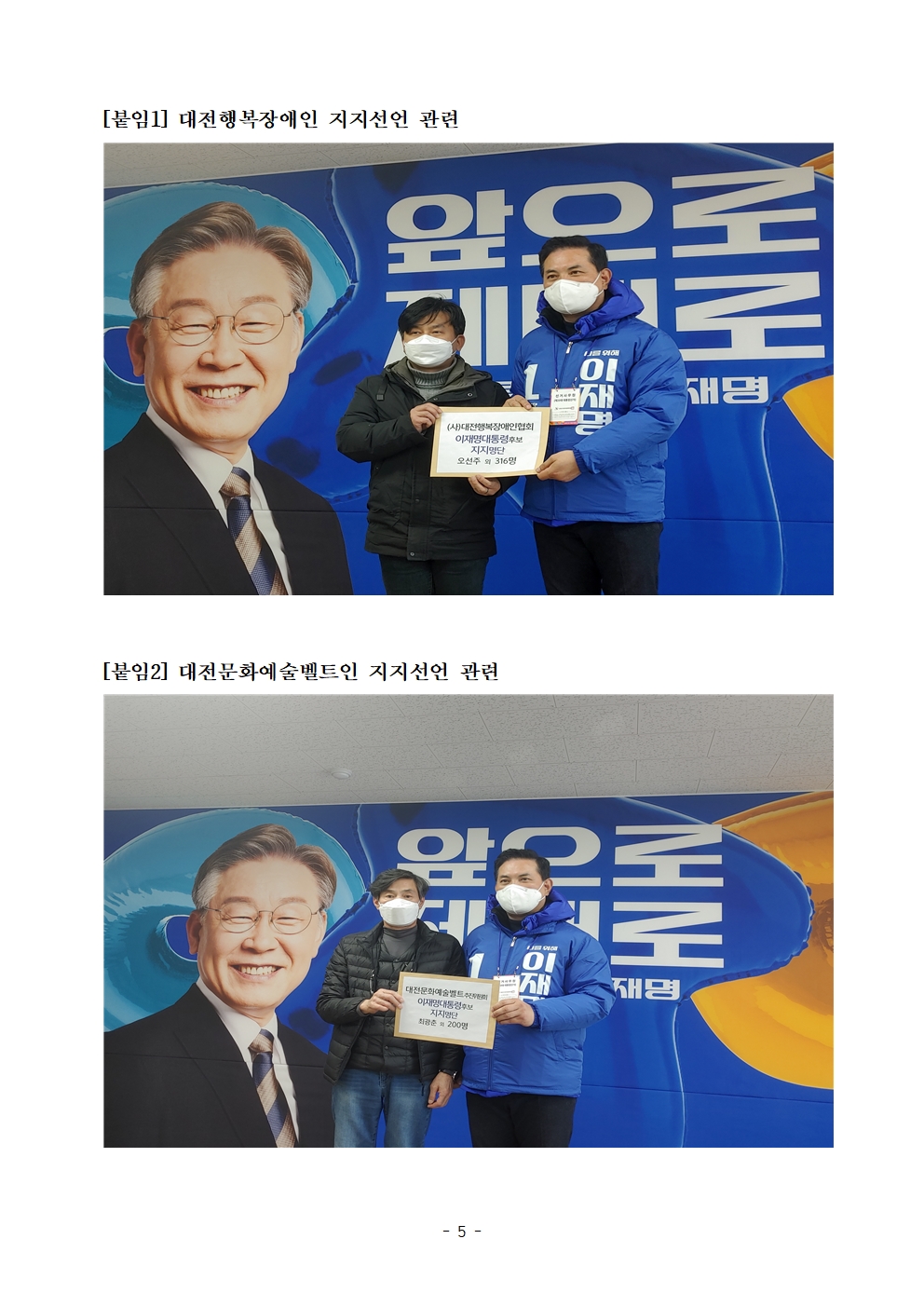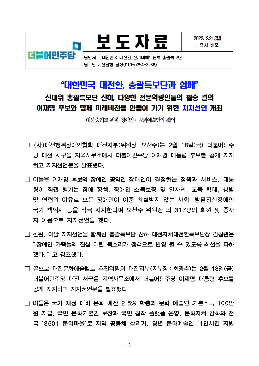 [보도자료] 더불어민주당 선대위 총괄특보단, 문신사·장애인·문화예술인·사회복지 관련 단체 지지선언