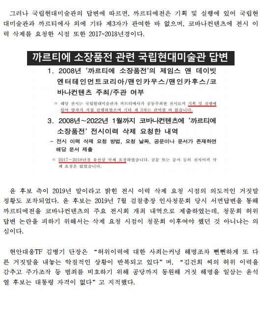 [보도자료] (더불어민주당 선대위 현안대응TF) 김건희 씨 '까르티에 소장품전' 전시 이력, 윤석열 후보 측 해명도 모두 '거짓' 국립현대미술관 답변 통해 드러나
